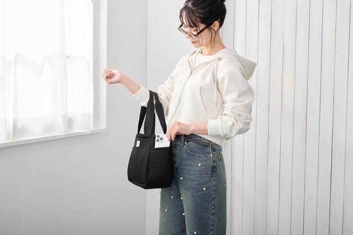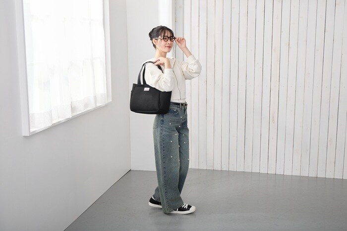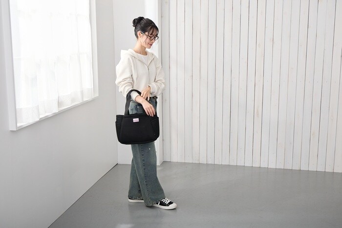 | 素材 | ポリエステル/持ち手:ポリエステル/留め具:ドットボタン |