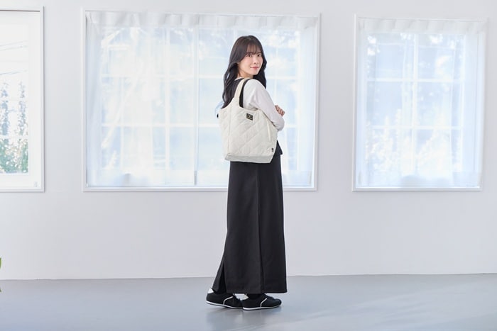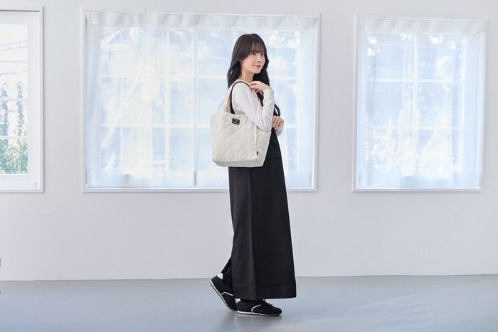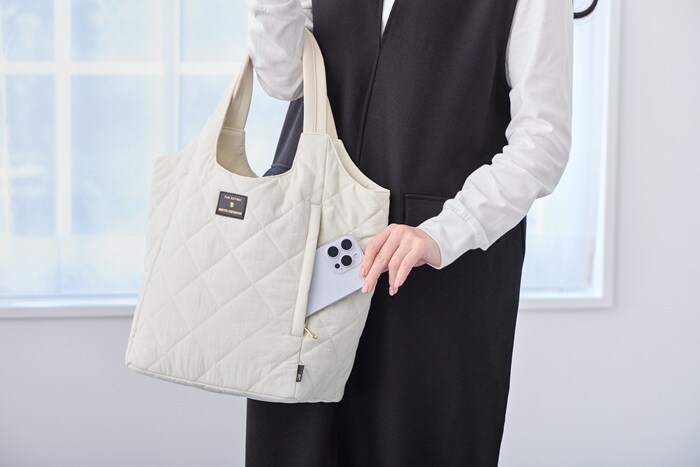 | 素材 | 表地:ナイロン(はっ水加工)/裏地:ポリエステル 持ち手:合成皮革/底板:ベルポーレン/留め具:マグネットホック (インナーカラー:01・02 ベージュ 03 ブルーグレー 04 グレー) |