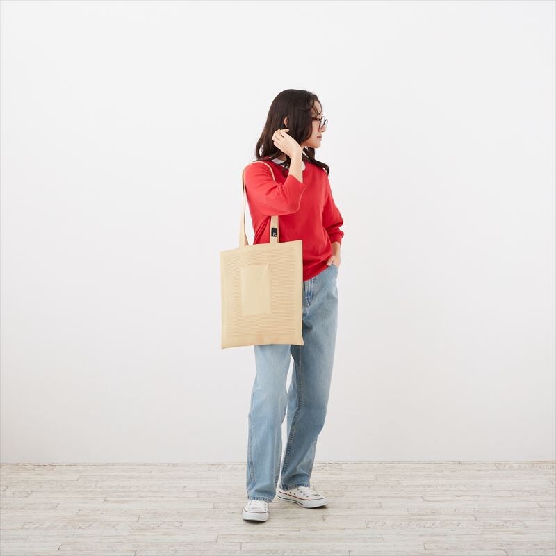 | 商品説明 | ルーポケットがアクセント!環境に優しいトート。サステナブルはもっとやさしく、心地よく。ペットボトルからリサイクルした先染めの糸を使用しました。先染めの糸は、生地状態での染色より汚染を少なく抑えることができます。また、縫製の工程を減らすことで、環境にもやさしいトートになっています!小物の収納に便利なルーポケットは、本体と一体で編まれているので、縫い目がないつくり。楽しいつくりで、身近に持てるエコトートです。A4サイズがぴったり入るサイズ。軽量で、柔らかい肌触り。体に寄り添い、使いやすい触り心地です。持ち手が長く、肩掛けしやすい。A4ファイルや13インチのノートPCが収納可能で、サブバッグとしても活用できます。アクセントになるルーポケットには、すぐ出したいスマホやマスクなどを入れておけるので便利です。■同シリーズのミニトート「ベビールー」もございます。併せてご覧くださいませ。 |