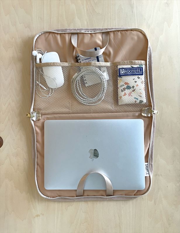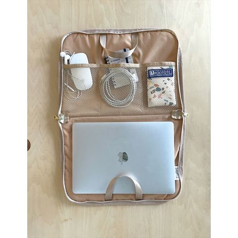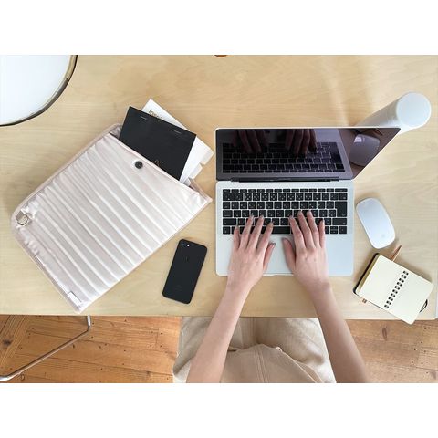 | 商品説明 | ノート型PC用トート「ピモッテ」。ワークスタイルが多様化している今、モバイル機器の携帯は欠かせません。シーンに応じてバッグのインナーにも、そのまま持ち歩けるトートにも…。合皮素材のキルティング加工。光沢感のある持ち手テープがポイント!適度なクッション性と持ち運びやすさ。デバイスをしっかりと保護しながら、かさばりにくい。薄型&軽量。ビジネスバッグや通勤カバンのインナーバッグとしても大活躍。内側に納まるハンドルがあるため、メインのバッグからの出し入れもラクラクです。コの字型についたファスナーで、縦横どちらからも中身を出し入れできる仕様。13インチのノート型PC対応。内側には、3つに区切られたメッシュポケット付き。マウスやコードなどの周辺機器をきれいに分けて収納できます。外側には、A4サイズも収納可能なルーポケットがあり、便利です。中身の飛び出しを防ぐループベルト付きで安心です。お財布やスマホなどの小物も一緒に入れて、スムーズに出し入れが可能です。別売りのストラップをつければ、ショルダーバッグとしてもお使いいただけます。肩に掛けて楽に移動することが可能です。 |
