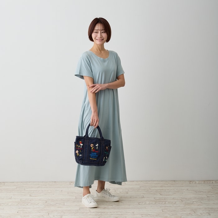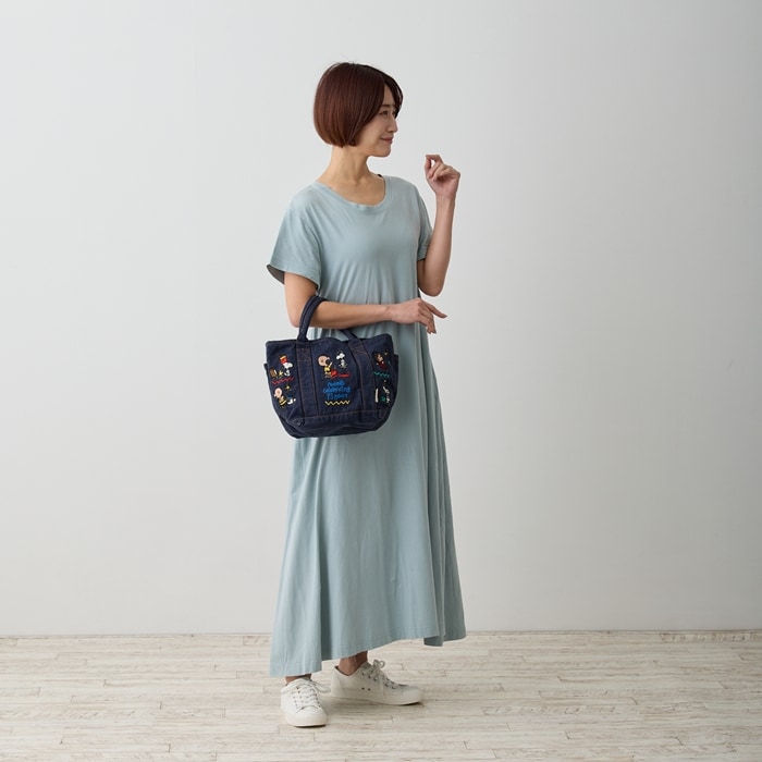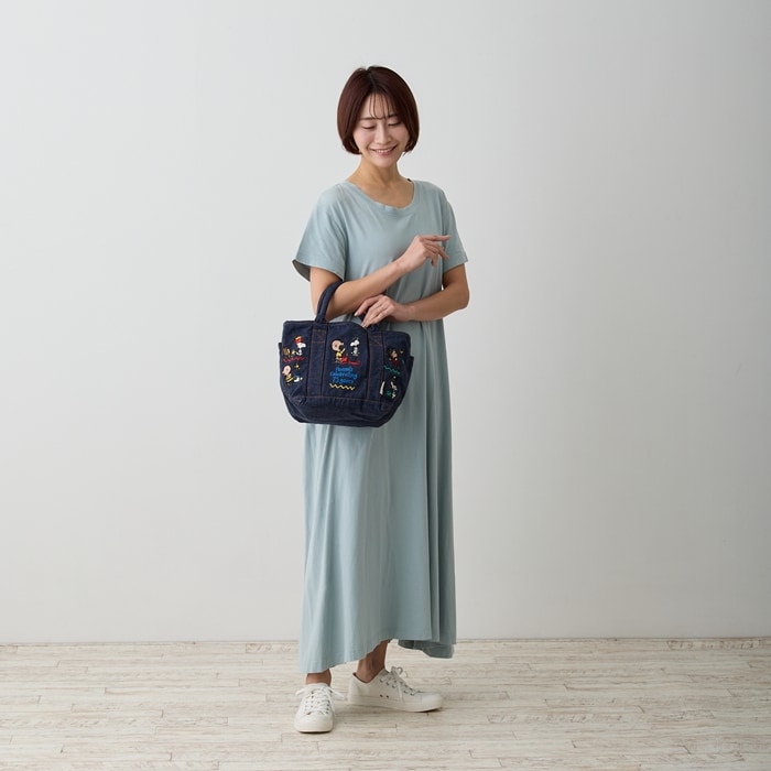 | 商品説明 | オトナも楽しんでいただけるこだわりのデザイン。表情豊かなスヌーピーと仲間たちの刺繍が楽しい。縦糸と横糸の色を変えることで、デニムの風合いに仕立てたリサイクルコットン生地。ざっくりと味のある刺繍と、洗い加工を施した風合いが魅力です。サブにもメインにもなる、使い勝手の良いデリサイズ。底マチが広く、見た目以上にたっぷり収納できます。芯材入りの丸持ち手で、カジュアルな中にもきちんと感をプラスしました。幅広い年代のカジュアルスタイルにマッチします。背面のルーポケットは、すぐに取り出したい小物の収納に便利です。 |