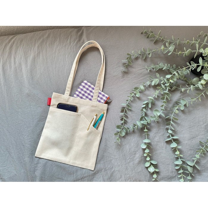 | 商品説明 | 環境に優しいリサイクルコットン素材のエコトート。もって楽しい、気づけばエコ!日常的に廃棄される大量の綿Tシャツを色別に回収管理し、それを細かく切り刻み“わた”にしていきます。その原料“わた”から紡績された糸は、大量の水・染料を使う工程を経ずリサイクルされます。新たな生地に生まれ変わり、その生地からトートバッグがつくられています。可愛いサイズのミニトート。長めの持ち手で腕掛けもしやすい。お財布、スマホやハンカチ…必要最低限なものを入れて、ちょっとしたお出かけに大活躍!フラットな形状なので、バッグの中に入れておいてもかさばりにくい。バッグインバッグやポーチとして使ってもよいですね。背面には、2つのルーポケットがついています。仕分けもできて、サッと取り出したいものを入れておける便利なポケットです。 |
