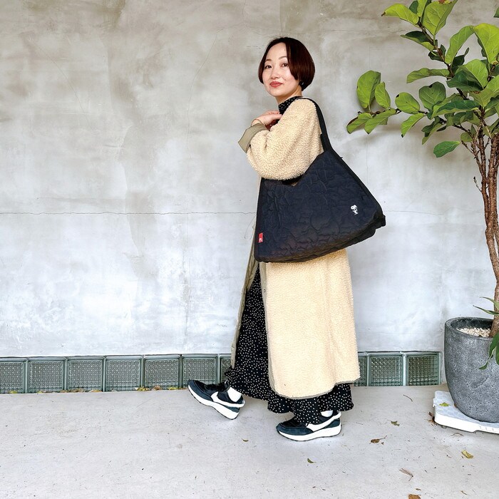 | 商品説明 | スヌーピーのかわいいワンポイント刺繍がアクセントに!丈夫なナイロン生地に、スヌーピーのシルエットのキルティング加工を施しました。軽くてふんわり、触り心地も気持ち良い。体に寄り添うやわらかさがあり、持ち運びに便利。たっぷり大容量で、大活躍!ランチボックス、ボトル、折りたたみ傘、コスメポーチなどもらくらく収納。口元ファスナーで安心です。汚れが気になりにくいポリエステル素材のカラー内生地。仕分けがしやすい2つの内ポケット。モノの出し入れがしやすく、中身もパッと確認できます。両サイドのルーポケットは、入り口が斜めにカットされたこだわりのつくり。すぐ取り出したいものを入れておくのに便利です。スマホやパスケース、ハンドクリーム、除菌スプレーなどの小物の収納に。手持ちスタイル、肩掛けスタイル、斜め掛けできるショルダースタイル。3way仕様で、普段使いやアウトドア、ちょっとしたお出かけなど、様々なシーンでお使いいただけます。また、サイドの持ち手は、ベビーカーへも掛けやすい長さです。いつでも清潔に。手洗い可能で、衛生的に安心してご利用いただけます。季節を問わず大活躍です。 |