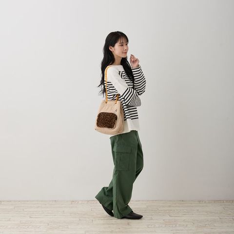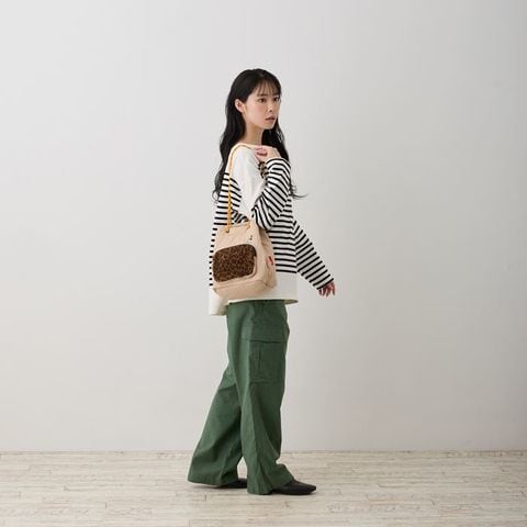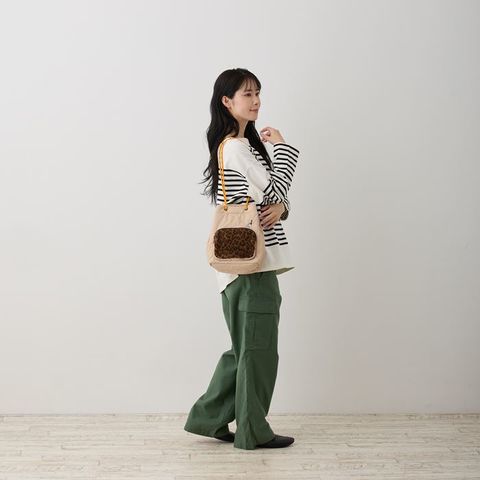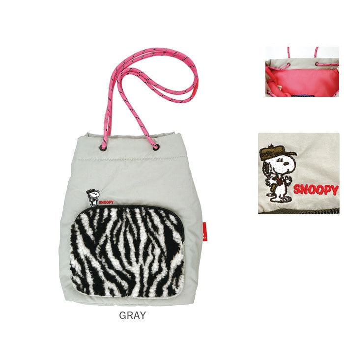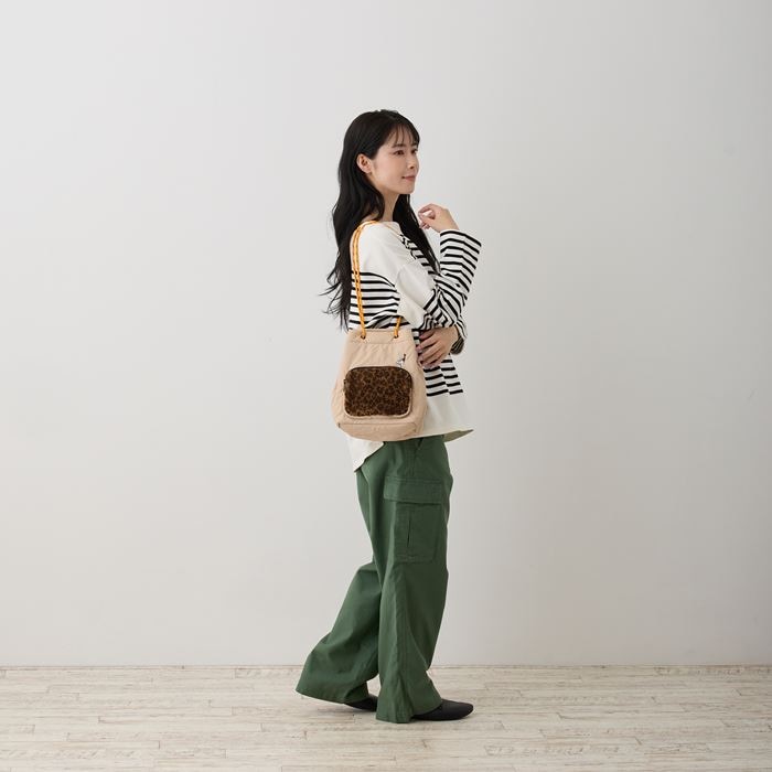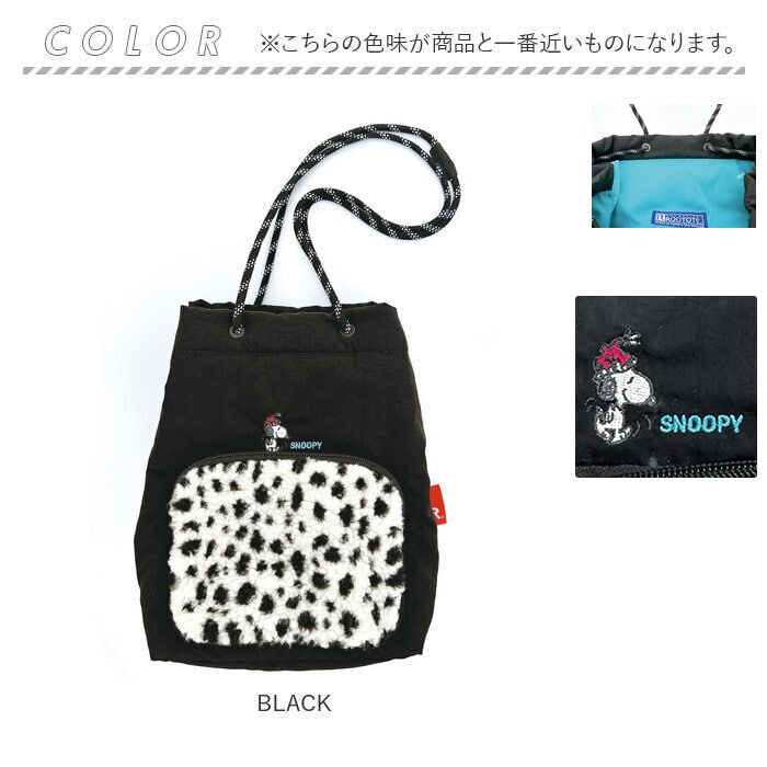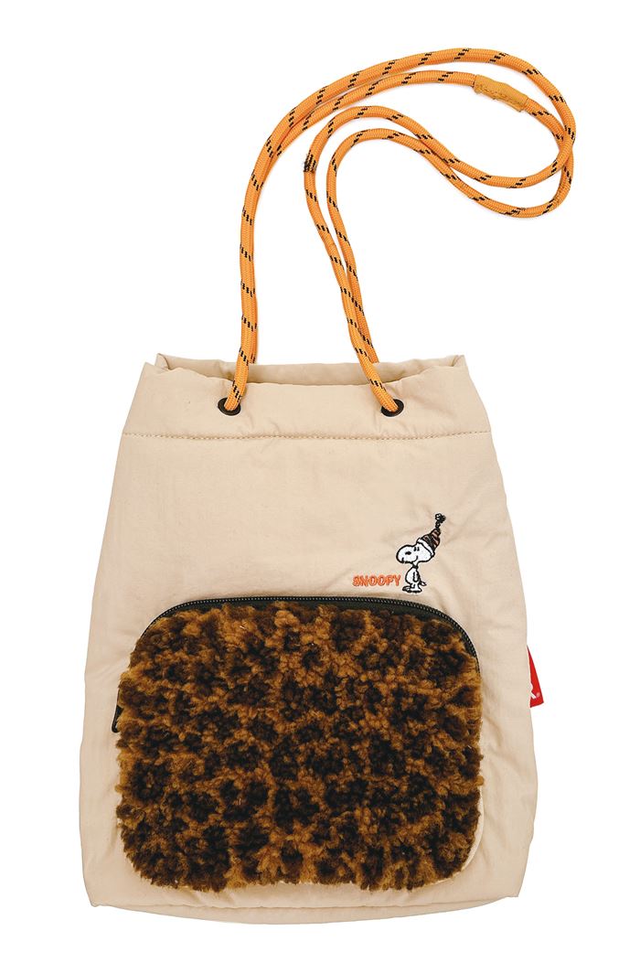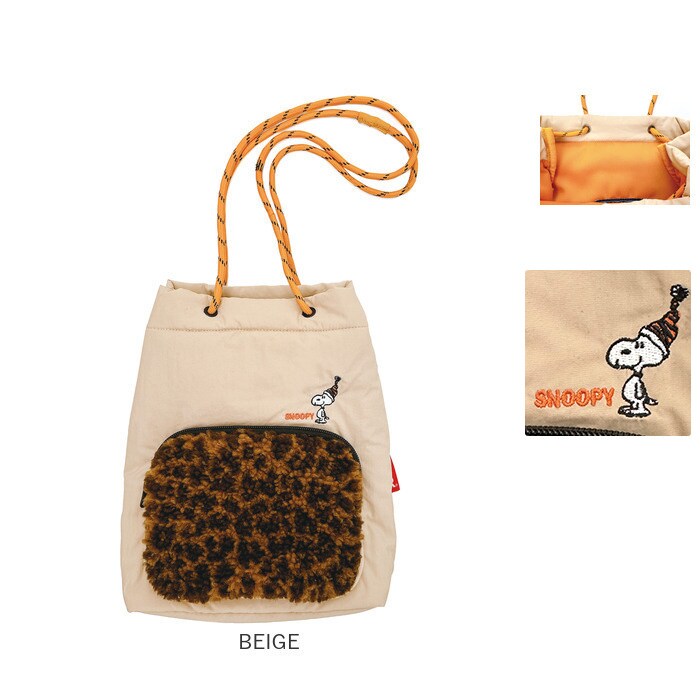 | 商品説明 | アニマル柄のもこもこボアポケットがアクセント。ポケット上部にひょっこりいるワンポイント刺繍のスヌーピーがかわいい!軽くてふんわり、触り心地も気持ち良い。体に寄り添うやわらかさがあり、持ち運びに便利。口元を絞って丸みのあるフォルムで可愛らしく。小さいながらも必要なものはしっかり収納。財布やスマホ、ボトル、ハンカチなどがちょうど入ります。2本の持ち手で、手持ちにしたり、肩掛けにしたり。1本で絞れば、斜め掛けもできます。両手フリーで、アクティブに!ショルダー部分を結べば、お好きな長さで使えます。前面のポケットはラウンドファスナーになっているので、大きく開いて中身の取り出しがスムーズ。背面のルーポケットはサッと取り出したいものを入れておけるので便利です。 |