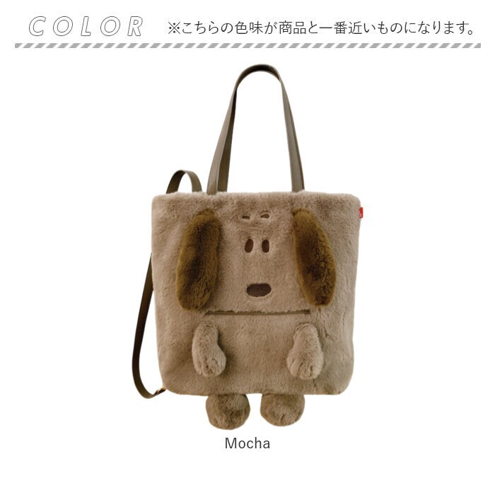 | 商品説明 | 手触りの良いもふもふスヌーピー。まるでぬいぐるみを連れてお出かけしているよう。いつでもあなたに寄り添います。トートとしてだけでなく、リュックとしても。内側のベルトを外側の金具にセット。ベルト部分と持ち手に手を通せば、背負いでも使えます。両手フリーで、アクティブに!用途に合わせて、使い分けができます。軽量で、A4ファイルもすっぽり入るサイズ。たくさんの荷物を運べて便利!荷物の多いお出掛けにもぴったり。背面の大きめルーポケットには、背中のブチ模様とかわいいしっぽのデザインもしっかり再現されています。すぐ取り出したい物の収納に。トートを肩掛けしたままでも出し入れしやすいポケットです。 |