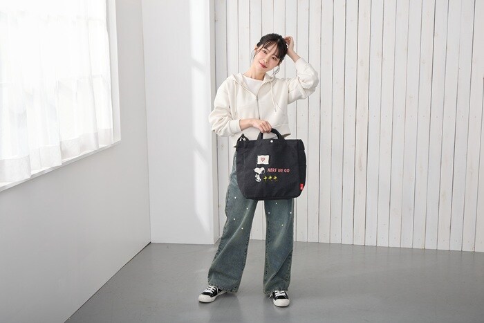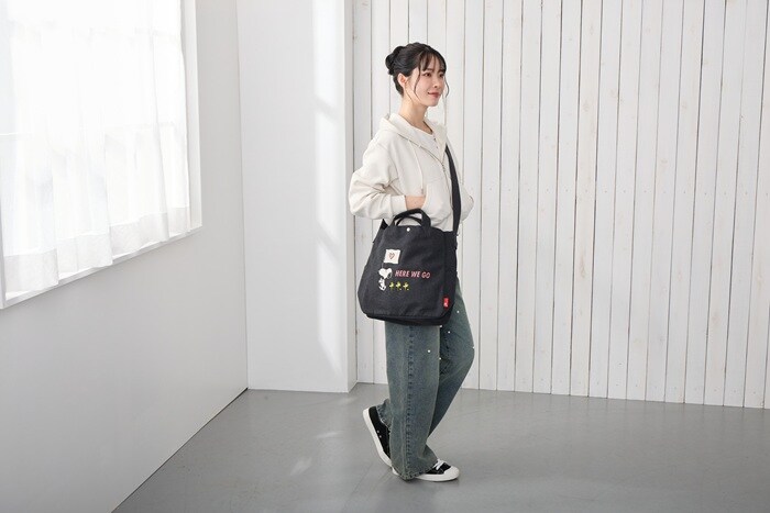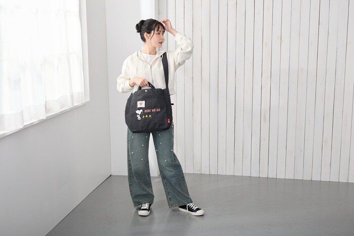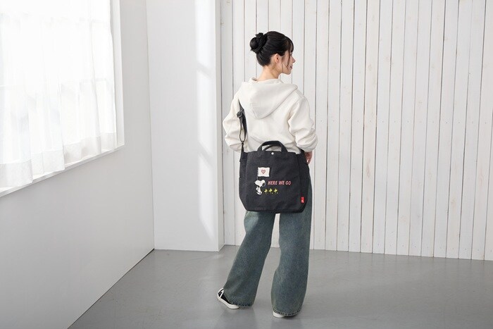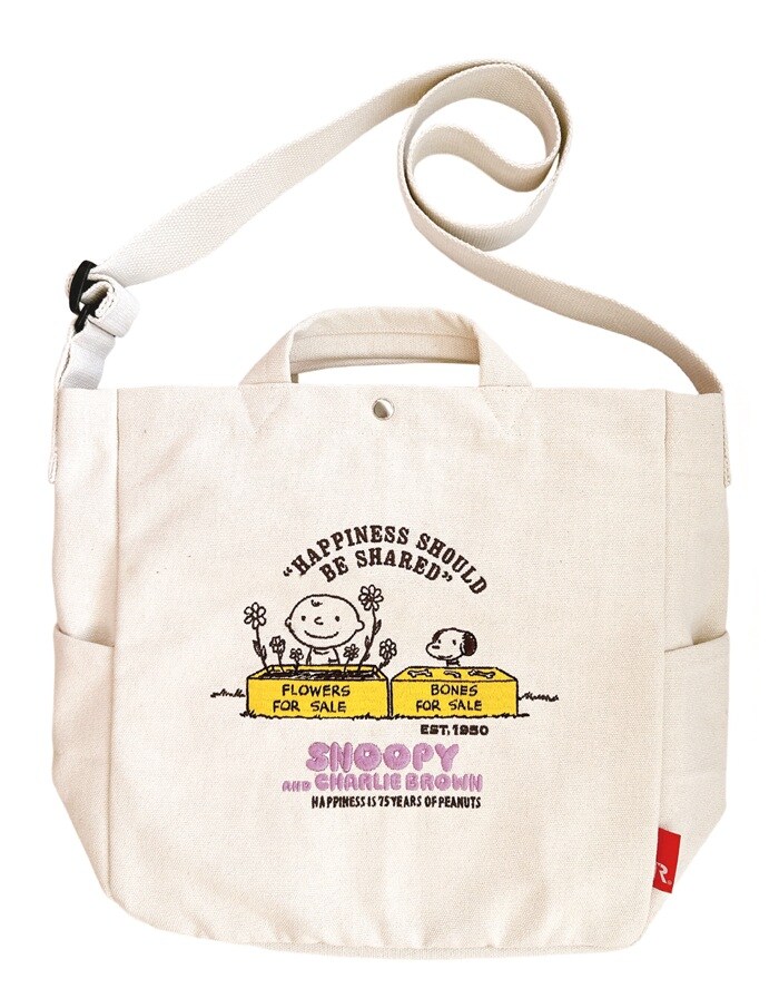 | 商品説明 | エコフレンドリーなリサイクルコットン素材。もって楽しい、気づけばエコ!オトナも楽しんでいただけるこだわりのデザイン。表情豊かなスヌーピーの刺繍が愛らしい。両手フリーでアクティブに。トートバッグ&ショルダーバッグの2way仕様。ショルダーベルトは長さ調節が可能です。肩かけや斜めかけでも、シーンに合わせて選べます。軽くてたっぷり入るので、荷物が多くなりがちなシーンにも大活躍。A4サイズのファイルや13インチのPCケースも収納可能。両サイドのルーポケットには、ボトルや折りたたみ傘を立てて入れられます。出し入れスムーズ!2つに分かれた内ポケットは、バッグの中で迷子になりがちなアイテムの指定席。 |