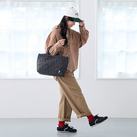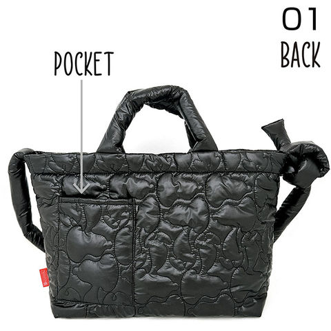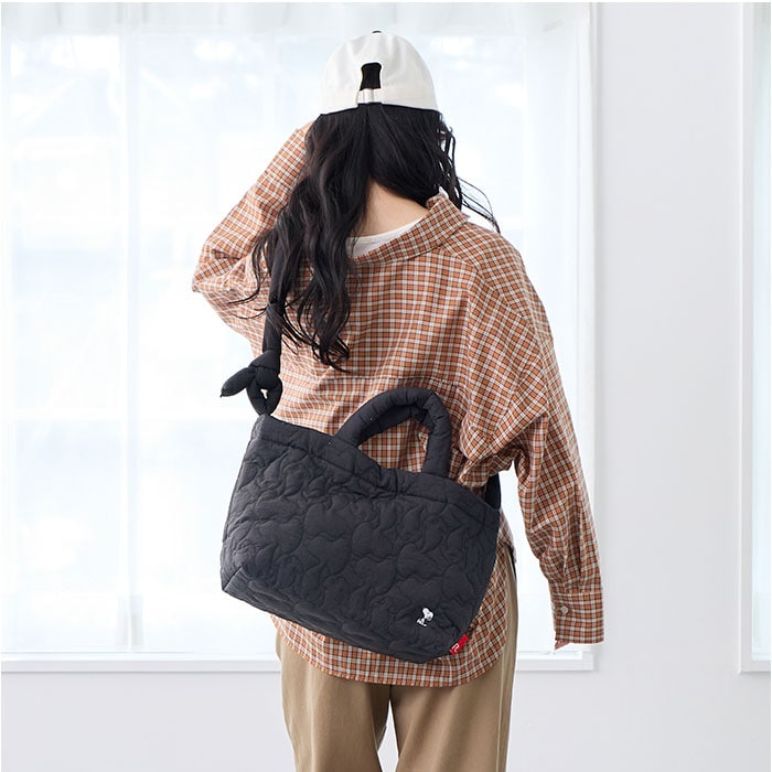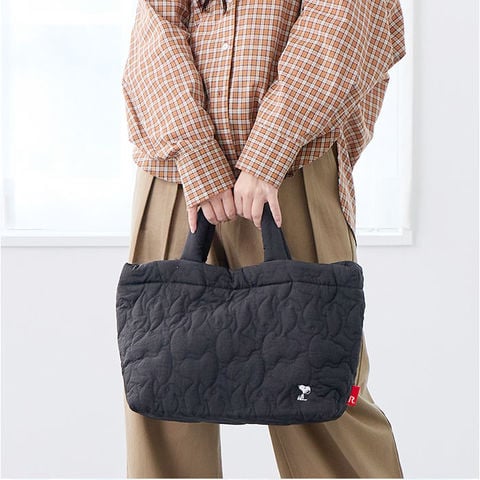 | 商品説明 | キルティングのパターンがスヌーピーのシルエット!ふかふかモチモチのショルダーストラップもポイントです。A4サイズが収納可能な「ミディアム」。少し横長なシルエットも今の気分♪軽くて体に添う柔らかさがありながら、しっかり自立。ドットボタン開閉の口元も大きく開くから、モノの出し入れがスムーズに行えます。底板付きで、たくさんの荷物でもきれいな形をキープしてくれます。内ポケットに付いたROOTOTEオリジナル織りネームもうれしいポイント。中をのぞくたびにかわいい。両手フリーでアクティブに。トートバッグ&ショルダーバッグの2way仕様。ふかふかモチモチのショルダーは、結んで長さ調節が可能。コロンとした結び目もアクセント。背面のルーポケットには、サッと出し入れしたいスマホなどを入れておけるので便利です。 |