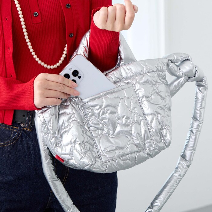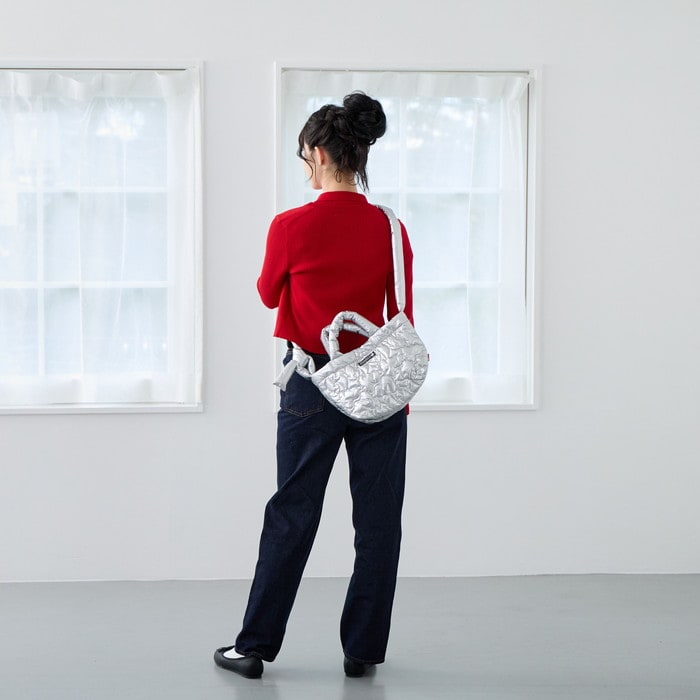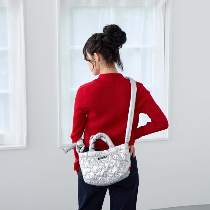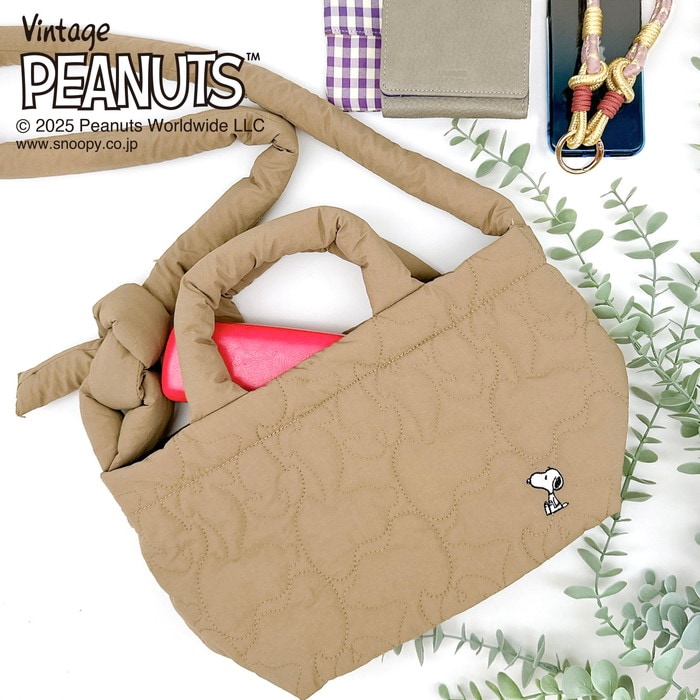 | 商品説明 | キルティングのパターンがスヌーピーのシルエット!ふかふかモチモチのショルダーストラップもポイントです。メインにもサブにも使いやすいサイズ「デリ」。スマホ、長財布、ボトル、A5ノートなどが収納可能。少し横長なシルエットも今の気分♪軽くて体に添う柔らかさがありながら、しっかり自立。ドットボタン開閉の口元も大きく開くから、モノの出し入れがスムーズに行えます。内ポケットに付いたROOTOTEオリジナル織りネームもうれしいポイント。中をのぞくたびにかわいい。両手フリーでアクティブに。トートバッグ&ショルダーバッグの2way仕様。ふかふかモチモチのショルダーは、結んで長さ調節が可能。コロンとした結び目もアクセント。背面のルーポケットには、サッと取り出したいスマホなどを入れておけるので便利です。 |
