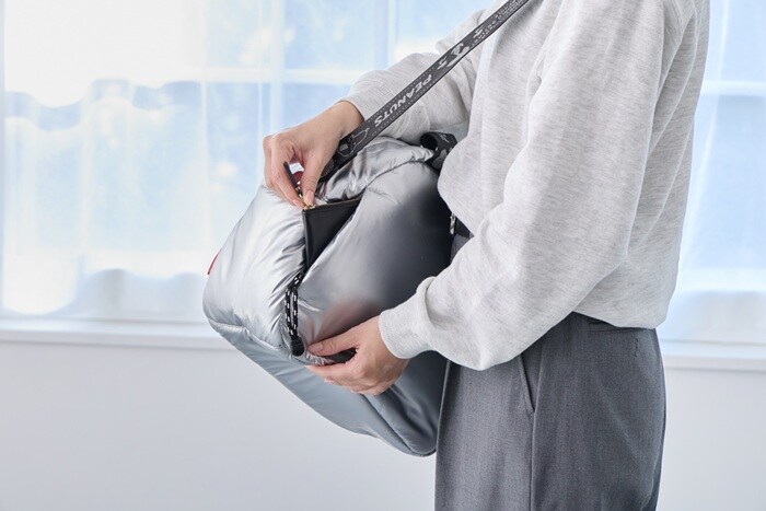 | 商品説明 | 本体はふかふかとしたやさしい手ざわりで、見た目以上に軽やか。スヌーピーとロゴが織り込まれたテープのハンドルや、ROOTOTEオリジナルの織りネームがアクセント。コロンと丸いドーム型の「ミディアム」。かわいいフォルムながらA4サイズも収まる頼れる大きさ。内側には小物用ポケットが2つと、タブレット等の収納にも適した大きめボンディングポケットを装備。荷物を整理して収納できるのもうれしいポイントです。本体両サイドにはオープンタイプのルーポケット。背面にはファスナー付きのルーポケットがあり、小物整理がラクラク。バッグの中で探し物をするストレスが減らせます。トートバッグ&ショルダーバッグの2way仕様。ショルダーベルトは、取り外し&長さ調節が可能です。手持ち、肩掛け、斜め掛け、シーンに合わせて使い分け。アクティブなお出かけにもぴったり!口元はダブルファスナー仕様で、中身が見えず安心。リング状の引き手で開け閉めもスムーズ。ふっくらやわらかな触り心地と軽さで、長時間のお出かけでも快適に持ち歩けます。シャイニーなブラック&シルバー。シワ加工で風合いのあるマットなブラック&ベージュ。お好みの質感をセレクトしていただけます。本体は、ジョー・クールとスヌーピー&ウッドストックのワンポイント刺繍でシンプルなあしらい。遊び心のある柄入りハンドルやショルダーベルトを合わせることで、大人も楽しめるトートバッグに仕上がりました。 |