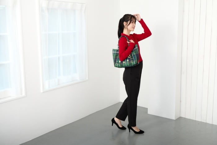 | 商品説明 | タータンチェックにゴールドカラーの糸でキュートなフェイスとリボンを刺繍。ハリのある生地で、軽量ながら程よいきちんと感も魅力。しっかりと自立するので、荷物の出し入れもスムーズに行えます。普段使いにちょうどいいサイズの「デリ」。A5ノートや長財布、ボトル、ポーチ、折りたたみ傘など。毎日の必需品がきれいに収まります。底板付きで、たくさんの荷物でもきれいな形をキープ。サイドにはファスナー付きのルーポケット。鍵やパスケースなど、大事なものを安心して収納できます。内側にもオープンポケットがあり、小物の整理も快適です。落ち着いた色合いが多くなる秋冬ファッション。明るいチェック柄がコーデのアクセントになり、持つだけで華やかな印象に。 |