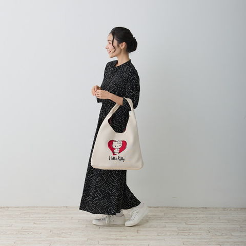 | 商品説明 | 2025 SANRIO CO., LTD. APPROVAL NO. L660248ワンハンドルの持ち手が肩掛けしやすい「ラウンド」。体に寄り添うやわらかさがあり、カラダにフィットしやすい形状。持ち心地の良さが気分をあげてくれます。適度なハリがあり、型崩れしにくいニット素材。サラリとした手触りで、季節を問わずご使用いただけます。大きく開く口元は、マグネットホック開閉。A4サイズも収納可能。モノの出し入れがしやすく、中身もパッと確認できます。背面のルーポケットは、本体と一体で編まれていて、縫い目がないつくり。取り出す頻度の高い小物を入れておくのに便利です。 |