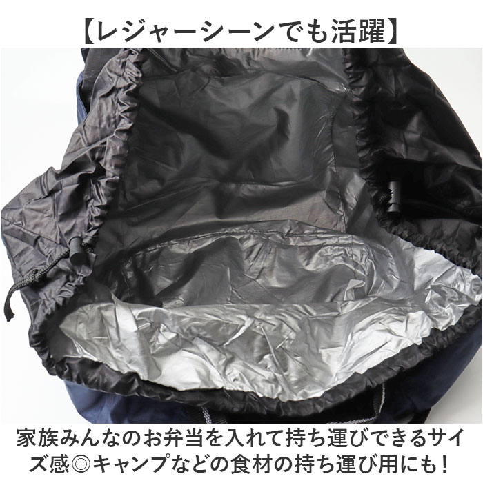 商品説明【鮮度長持ちな保冷・保温付き】沢山買い物した時も持ち運び楽ちんな2WAYのエコバッグが新発売。【軽くて丈夫なリップストップ】リップストップ生地を採用し、軽く破れにくいのが嬉しい♪毎日のお買い物にピッタリ☆【鮮度や美味しさ長持ち】内側は保冷・保温効果があるシルバーコーティングを施し冷凍食品や魚・肉を入れても痛みにくい【週末のまとめ買いにも対応】・容量30L設計で週末のまとめ買いにも対応した大容量さ◎【リュックで持ち運び楽ちん】リュックのショルダー付きで、沢山買い物した時も持ち運びが楽にできる仕様。【ギュッと絞ってこぼれ落ちない】開口部はギュッと絞って、小物がこぼれ落ちない巾着タイプ。開閉もスムーズに完了!【簡単固定できるバックル】バッグの上部にバックルを搭載し、簡単に固定可能。【レジャーシーンでも活躍】家族みんなのお弁当を入れて持ち運びできるサイズ感◎キャンプなどの食材の持ち運び用にも!【ユニセックスで使える】ママさんはもちろん、男性の方にも使いやすいベーシックなカラーとシンプルな見た目。