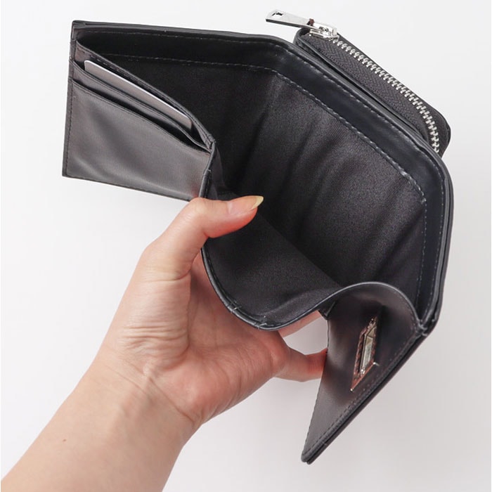 Rename 回転金具 3つ折り財布【ブラック】