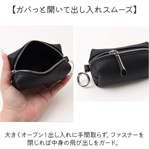 | 商品説明 | 【必需品をおしゃれに持ち歩ける】いつも持ち歩く小物をIN。バッグに取り付けできる「Rename マルチポーチ」。【手のひらサイズでもマルチに活躍】持ち運びやすいコンパクト設計。小さいながらも、散らばりがちな小物がすっきり収まる◎【ガバっと開いて出し入れスムーズ】大きくオープン!出し入れに手間取らず、ファスナーを閉じれば中身の飛び出しをガード。【使い方自在な優秀アイテム】リップや小さめのコスメ、アクセサリーやヘアゴム、常備薬や鍵など。使い方は自分次第♪【サッと装着できるカラビナリング】バッグやスマホショルダーに通して持ち運び。直接鍵を取り付けて、キーリングとしても。【付け替えも簡単でノンストレス】リングは押すだけでサクッとオープン。バッグを変える際も、ワンタッチで付け替え。【バッグに馴染む上品なデザイン】シボ感のあるフェイクレザーに、光沢のある金具がマッチ。バッグを選ばないシンプルな仕上がり。 |