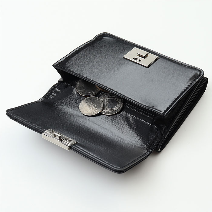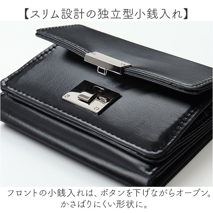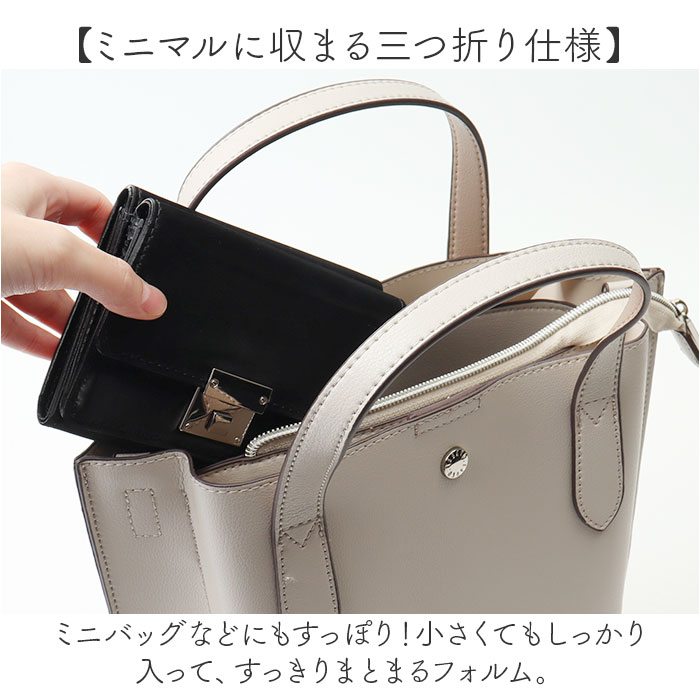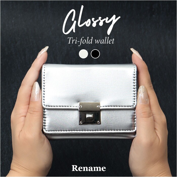 商品説明【おしゃれに持ち歩けるミニ財布】デザイン性も使い勝手もばっちり。気分の上がる「Rename グロッシー 3つ折り財布」。【トレンド感のあるシックな仕上がり】絶妙な光沢やツヤのあるグロッシー素材。フロント金具がキラッと輝いてスタイリッシュ☆【ミニマルに収まる三つ折り仕様】ミニバッグなどにもすっぽり!小さくてもしっかり入って、すっきりまとまるフォルム。【スリム設計の独立型小銭入れ】フロントの小銭入れは、ボタンを下げながらオープン。かさばりにくい形状に。【いつでもどこでも開け閉め簡単】開口部はスナップボタン式。いつでもサッと開け閉めでき、飛び出しをガード。【現金もカードも必要な物はしっかり】横幅のあるお札入れに、使用頻度の高いカードを収納できる5ポケット。仕分けもラクラク。【大切な方へのギフトにもおすすめ】シンプルで、ミニバッグをイメージするようなデザイン。誕生日などの贈り物にも最適。【ポケット仕様】外側:金具式小銭入れ×1内側:お札入れ×1、カードポケット×5