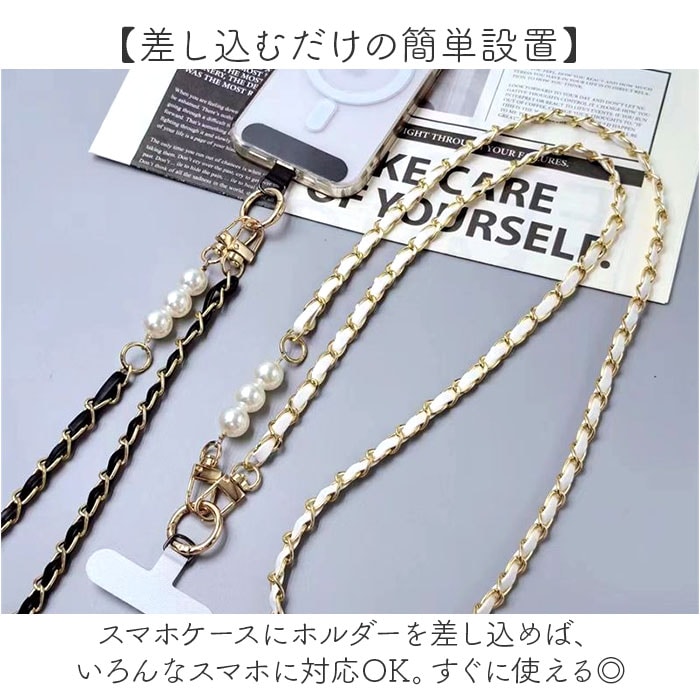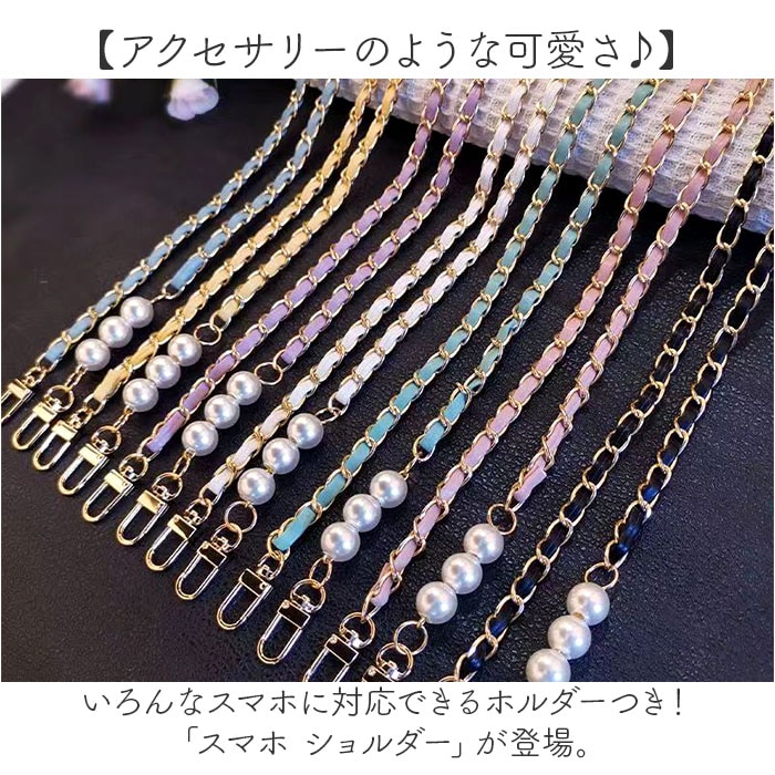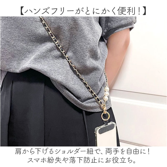 | 商品説明 | 【アクセサリーのような可愛さ♪】いろんなスマホに対応できるホルダーつき!「スマホ ショルダー」が登場。【ハンズフリーがとにかく便利!】肩から下げるショルダー紐で、両手を自由に!スマホ紛失や落下防止にお役立ち。【キラッとパール&ゴールド】アクセサリー感覚で使える、イミテーションパールとチェーンがおしゃれ☆【360度回転で使いやすさUP】ストラップのホックは、クルっと360度回転する作り。使いやすく耐久性もUP!【差し込むだけの簡単設置】スマホケースにホルダーを差し込めば、いろんなスマホに対応OK。すぐに使える◎【つけたまま充電できる】充電口を邪魔しないので、1日中つけたままでOK!毎日使いにぴったりなアイテム。【お気に入りのカラーをチョイス】ベーシックから差し色まで豊富にご用意。気分や服装に合わせて選ぶのもGOOD☆ |
