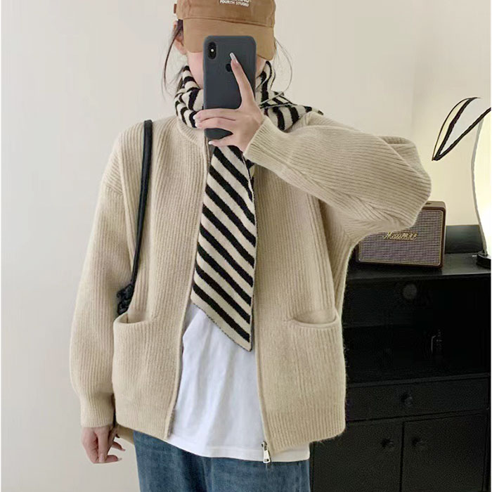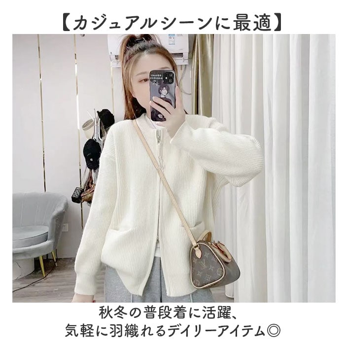 | 商品説明 | 【ニットカーディガン】ダブルファスナーでスタイリング自在なニットカーディガン【ダブルファスナーで便利】前面ダブルファスナーで開け閉め自在、下側を開けてトレンドの抜け感をプラス!【2ポケット付きで実用的】両サイドに便利な2つのポケット付き、小物収納で安心〇【リブ仕様でフィット感】袖と裾のリブ仕様で、体にやさしくフィットするシルエット。【カジュアルシーンに最適】秋冬の普段着に活躍、気軽に羽織れるデイリーアイテム◎【軽やかな着心地】アクリル・ポリエステル素材で、軽やかで快適な着用感♪ |