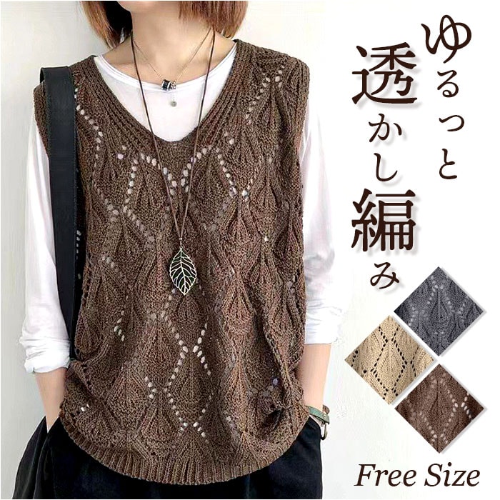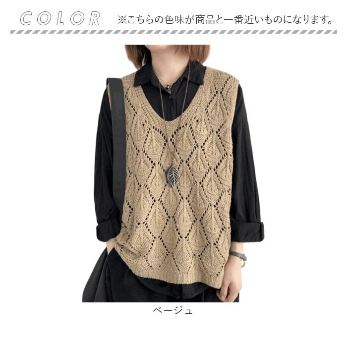 ニットベスト レディース 【ベージュ】【フリーサイズ】