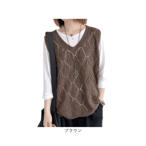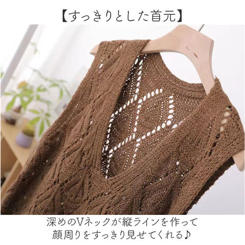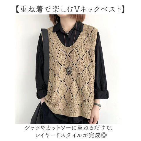 | 商品説明 | 【重ね着で楽しむVネックベスト】シャツやカットソーに重ねるだけで、レイヤードスタイルが完成◎【すっきりとした首元】深めのVネックが縦ラインを作って顔周りをすっきり見せてくれる♪【程よい抜け感の透け加減】ダイヤ柄の透かし編みで、季節を問わず着回せる〇【前後差のあるデザイン】後ろが前より長めの着丈設計で、気になる腰回りもカバー。 |