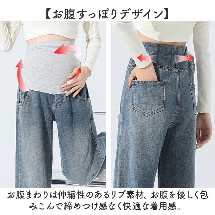 | 商品説明 | 【サッと着こなせる】マタニティー期もおしゃれを我慢せずに過ごせる♪「マタニティ デニムワイドパンツ」。【お腹すっぽりデザイン】お腹まわりは伸縮性のあるリブ素材。お腹を優しく包みこんで締めつけ感なく快適な着用感。【自分サイズにフィット】ウエストはゴム仕様。ボタンタイプのアジャスターベルトでサイズ調節が可能◎【ゆったりシルエット】程よい厚みの生地感。季節を問わず着用できて動きやすいつくり。【便利なポケット仕様】前後左右にポケットが付いていて実用性も抜群。【カジュアルの定番アイテム】どんなトップスとも合わせやすいデニムパンツ。産前から産後まで長く愛用できるのが嬉しい。 |