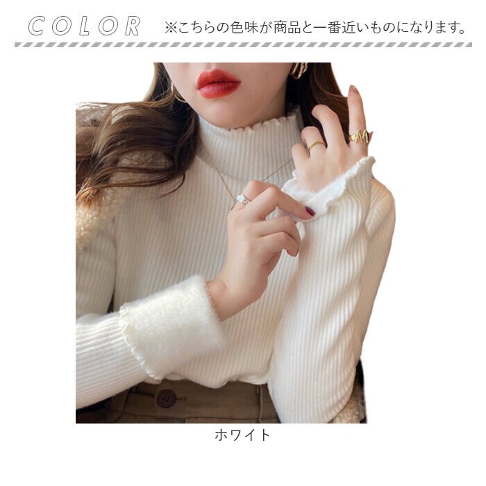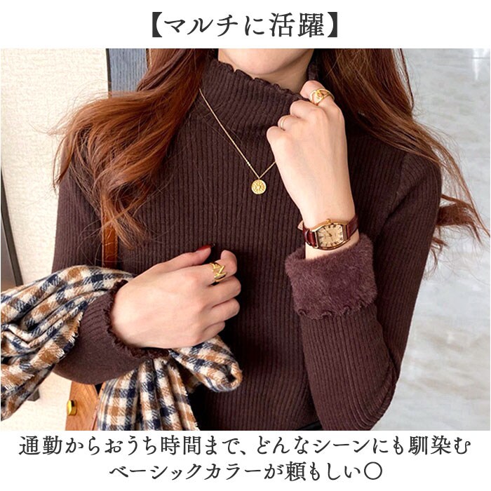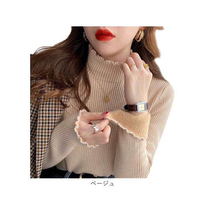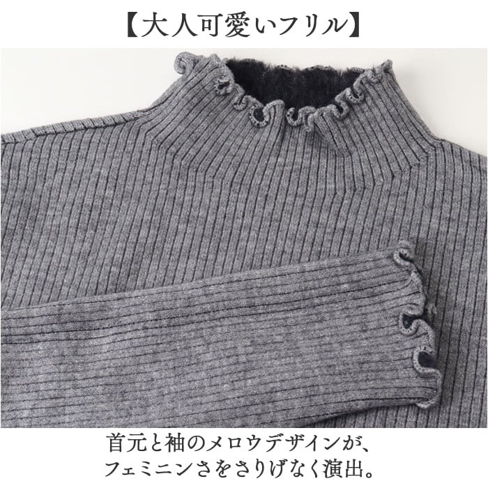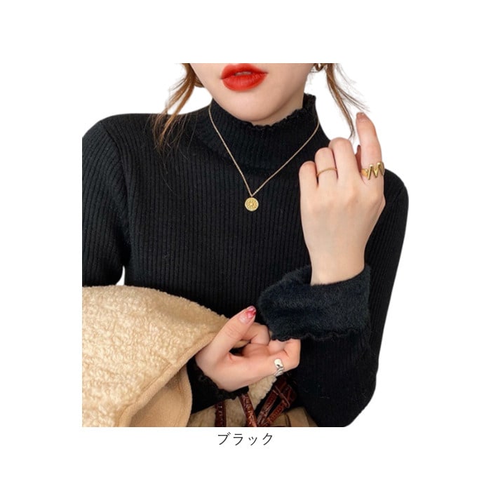| 商品説明 | 【薄いのにあたたかい】 優しい暖かさで冬を快適に過ごせるハイネック。【裏起毛でしっかり防寒】裏地のシャギーファーが体温を逃さず、驚くほど暖かい優秀ニット◎【伸縮性抜群のリブ】よく伸びるリブ素材が体にフィットし、動きやすいデザイン♪【大人可愛いフリル】首元と袖のメロウデザインが、フェミニンさをさりげなく演出。【マルチに活躍】通勤からおうち時間まで、どんなシーンにも馴染むベーシックカラーが頼もしい〇【なめらかな肌触り】ニット素材が肌に優しく寄り添い、一日中心地よく着られる快適さ! |