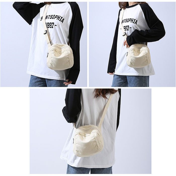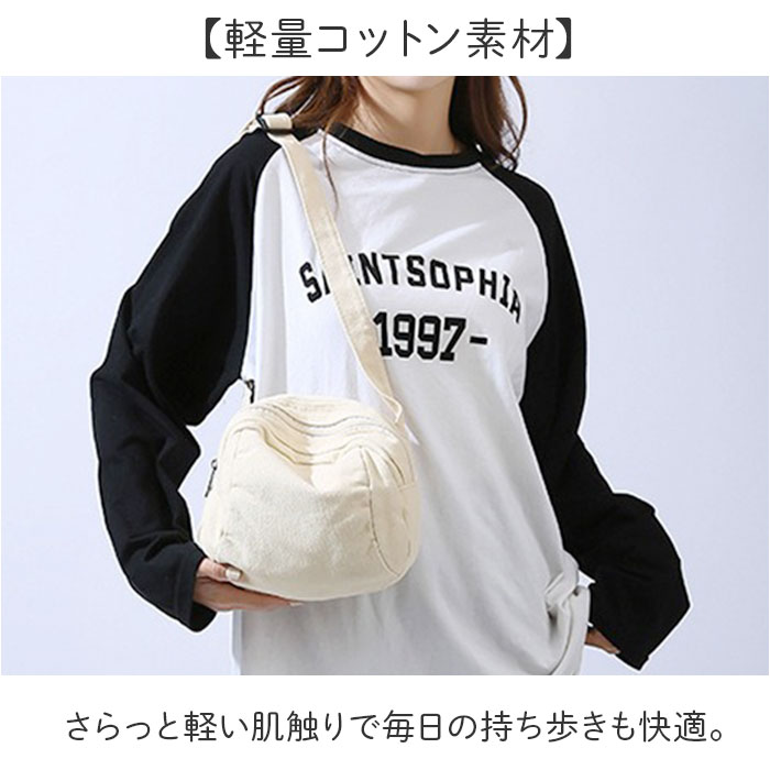 | 商品説明 | 【軽量ミニショルダー】マチが大きくてたっぷり収納できるコンパクトバッグ。【見た目より収納力〇】大きめのマチで財布やスマホ、ポーチも入る◎【内側Wポケット仕様】オープンとファスナーの2つのポケットで小物を整理整頓♪【長さ調整可能ベルト】ショルダーは調節できて体型に合わせやすい〇【軽量コットン素材】さらっと軽い肌触りで毎日の持ち歩きも快適。【男女兼用デザイン】シンプルなラウンドフォルムだからレディースもメンズもOK! |