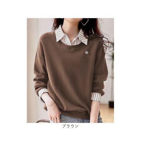 レイヤードニットシャツブラウス レディース【ブラウン】【M】