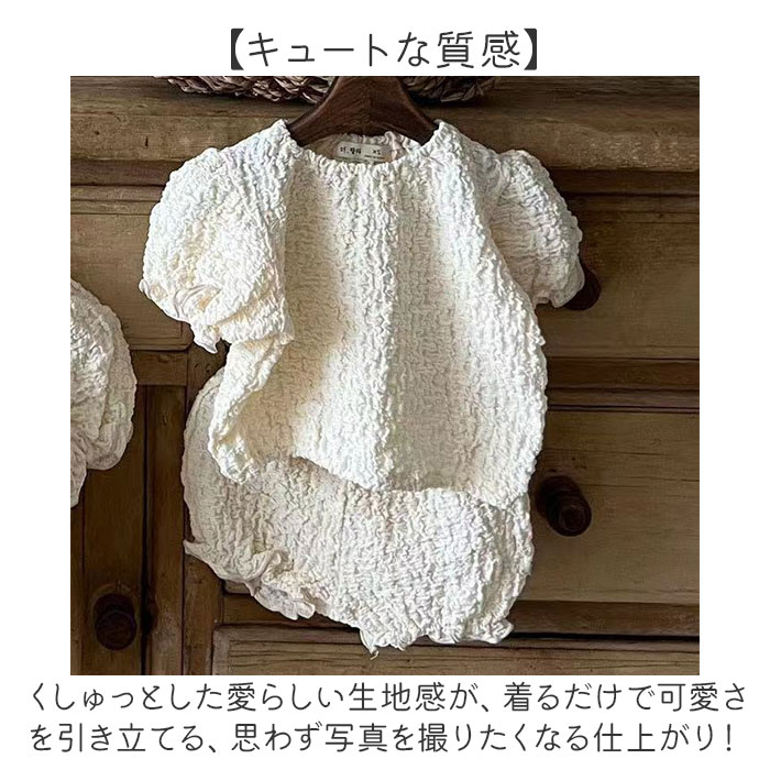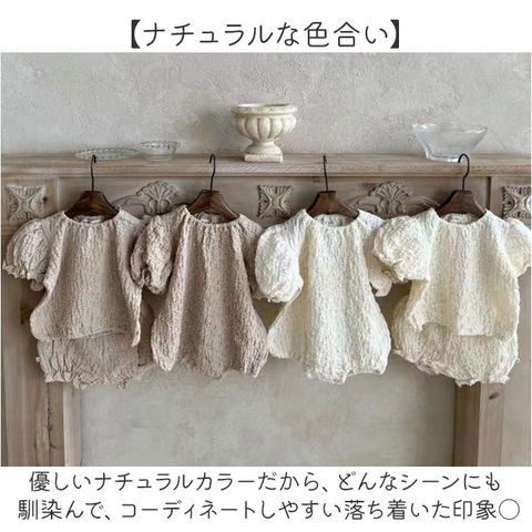 | 商品説明 | 【選べる2タイプ】くしゅっと可愛い生地感が魅力のベビー服。【成長に合わせて選べる】タイプAのロンパースと、タイプBのセパレートから選べて、赤ちゃんの月齢に合わせて使える便利さ♪【肌にやさしい素材】綿を使用した柔らかな生地が、デリケートな赤ちゃんの肌を包み込む、ママも安心の優しい触り心地。【キュートな質感】くしゅっとした愛らしい生地感が、着るだけで可愛さを引き立てる、思わず写真を撮りたくなる仕上がり!【ナチュラルな色合い】優しいナチュラルカラーだから、どんなシーンにも馴染んで、コーディネートしやすい落ち着いた印象〇 |