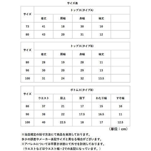 | サイズ | 【ベイビー】 [タイプA] ・73cm ・80cm [タイプB] ・80cm ・90cm ・100cm ※サイズについて詳細は、商品画像の中にあるサイズ表をご覧くださいませ。 |