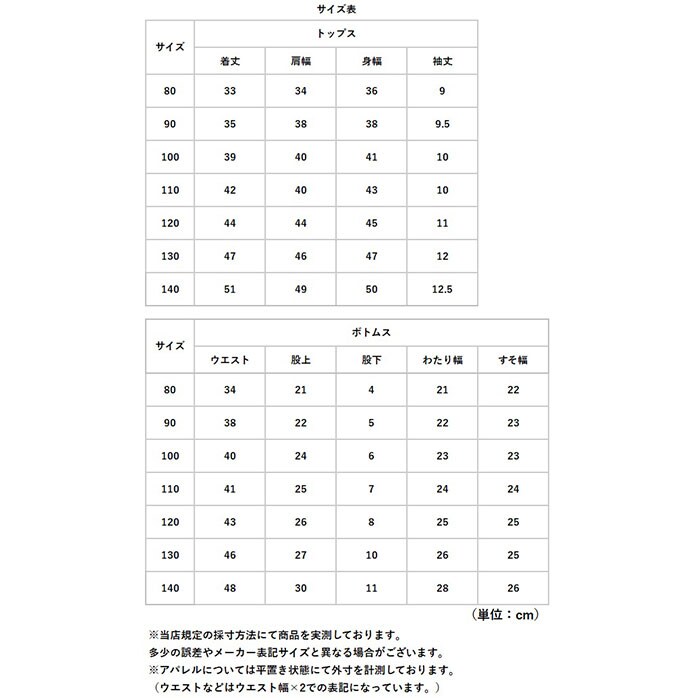 | サイズ | [キッズ] ・80cm ・90cm ・100cm ・110cm ・120cm ・130cm ・140cm ※サイズについて詳細は、商品画像の中にあるサイズ表をご覧くださいませ。 |