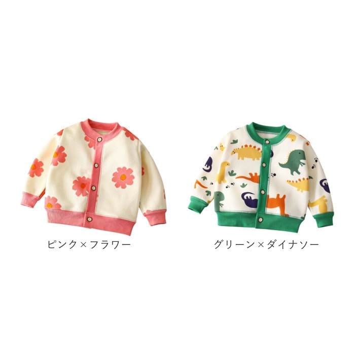 カーディガン キッズ 厚手【ピンク×フラワー】【100cm】