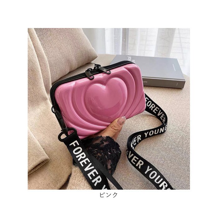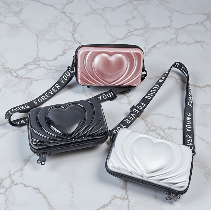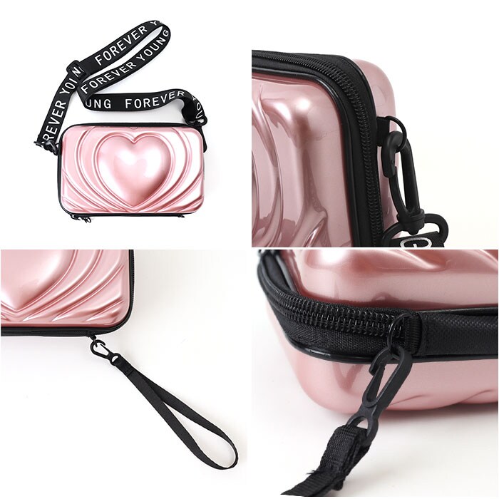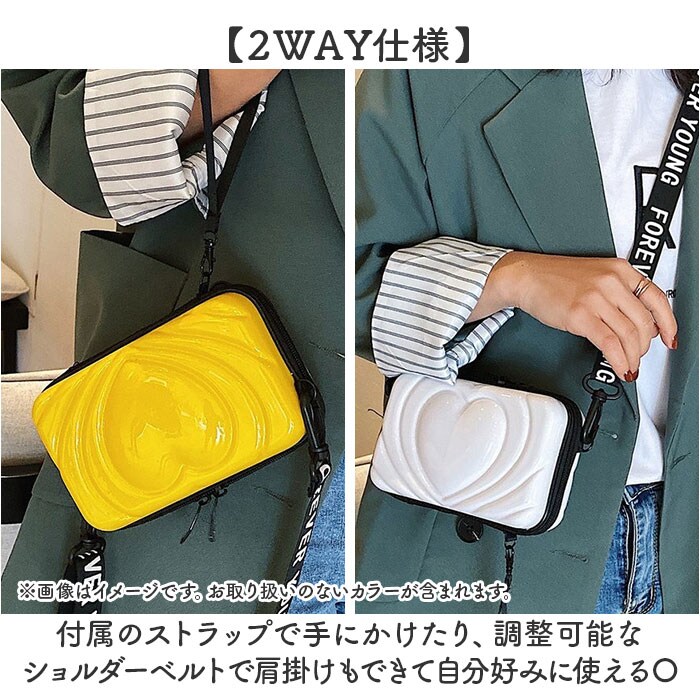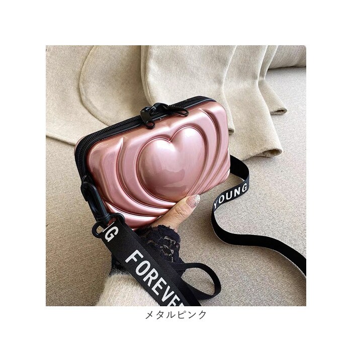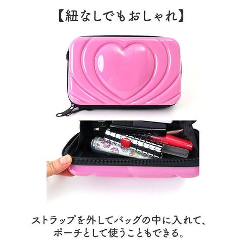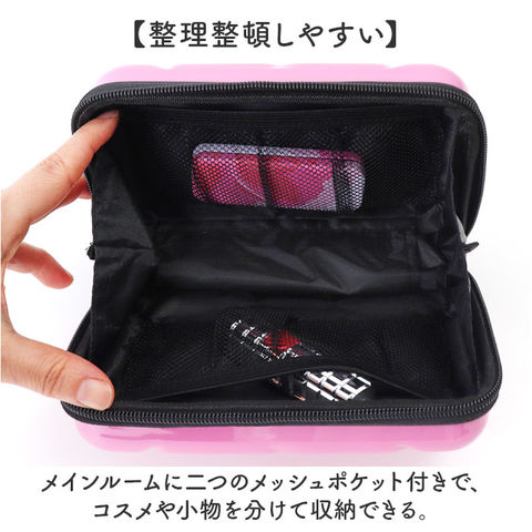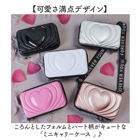 | 商品説明 | 【可愛さ満点デザイン】ころんとしたフォルムとハート柄がキュートな「ミニキャリーケース 」♪【2WAY仕様】付属のストラップで手にかけたり、調整可能なショルダーベルトで肩掛けもできて自分好みに使える〇【出し入れ簡単】ダブルファスナーでガバッと大きく開くから、中身の出し入れがスムーズ◎【整理整頓しやすい】メインルームに二つのメッシュポケット付きで、コスメや小物を分けて収納できる。【紐なしでもおしゃれ】ストラップを外してバッグの中に入れて、ポーチとして使うこともできる。【ちょっとの雨なら大丈夫】外側ははっ水加工により汚れや水滴を弾きやすくお手入れ簡単。※完全防水ではありません。 |