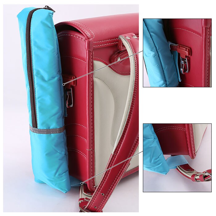 | 注意点 | 本製品を本来の目的以外にご使用しないでください。サイドベルトの幅が22mm以上のものには付けられません。あらかじめご確認ください。本製品を強く引っ張ったり振り回したりしないでください。破損の原因となります。本製品は完全防水構造ではありません。雨の中長時間使用した場合、雨水がしみ込む恐れがあります。またはっ水加工は永久的なものではなく、使用頻度によって徐々に低下していきます。ファスナー、縫い目部分に止水加工は施しておりません。はっ水加工が弱くなりましたら、市販のはっ水スプレーをお使いください。その際、はっ水スプレーによるムラができないか、目立たない箇所で、狭い範囲で試してからご使用ください。洗濯機の使用は避けてください。汚れた際は、柔らかい布を水に濡らして固く絞ってやさしく拭き取り、陰干しにして自然乾燥させてください。貴重品や電子機器を収納する際は、十分ご注意ください。万が一の紛失・破損の補償は致しかねます。本製品をランドセルに取り付けたまま、重いものを長時間入れて置かないでください。ランドセルが傷ついたり変形の恐れがあります。カメラやモニターの性質により、画像と実物の色の違いがある場合がございますのでご理解願います。 |