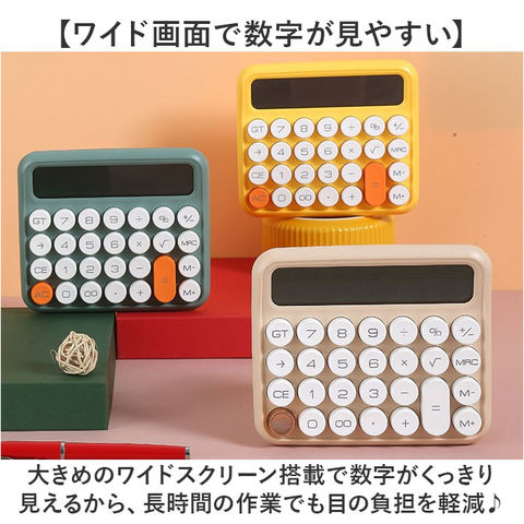 | 商品説明 | 【12桁表示で大きな計算も】12桁まで対応しているから、家計管理や経理業務など幅広いシーンで活躍する電卓◎【ワイド画面で数字が見やすい】大きめのワイドスクリーン搭載で数字がくっきり見えるから、長時間の作業でも目の負担を軽減♪【滑り止め付きで安定感抜群】底面に滑り止めが付いているから、デスクの上でもしっかり固定され、スムーズに計算作業を進められる〇【おしゃれなデザイン】レトロで可愛らしいルックスだから、オフィスや自宅のデスク周りをさりげなく華やかに演出できる!【押しやすい丸ボタン】丸みのある大きめボタンを採用しているから、指先でしっかり押せて使い心地が良い。 |