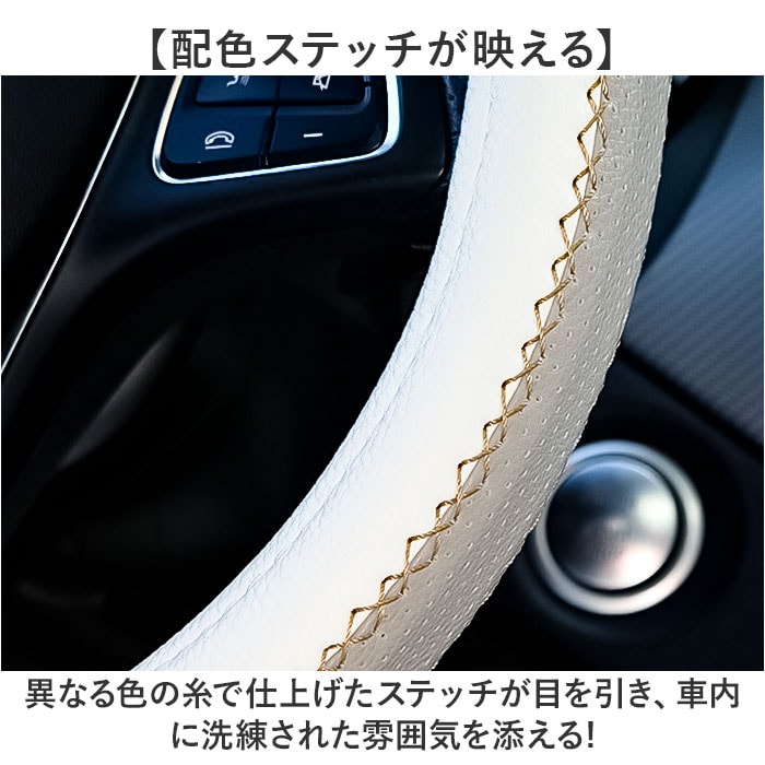 | 商品説明 | 【車内をドレスアップ】通気性抜群のハンドルカバー。【パンチング加工で快適】細かな穴あき加工が施された通気性の良い仕様で、長時間のドライブも手のひらが蒸れにくい◎【配色ステッチが映える】異なる色の糸で仕上げたステッチが目を引き、車内に洗練された雰囲気を添える!【人工皮革の上質感】しっとりと手になじむ人工皮革素材。【ハンドルを守る役割】カバーを装着することで日焼けや汚れからハンドルを保護し、愛車を長く美しく保てる♪ |