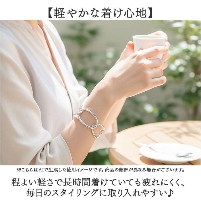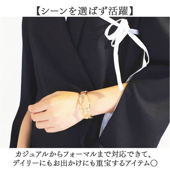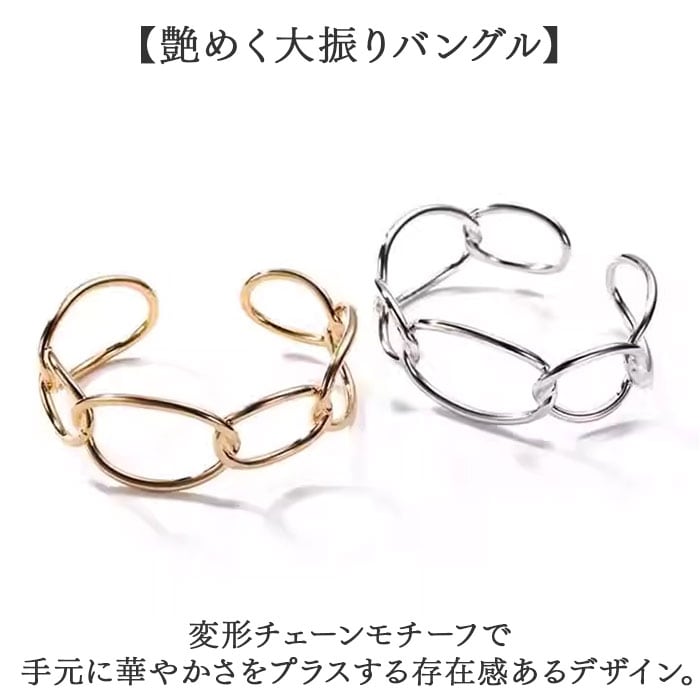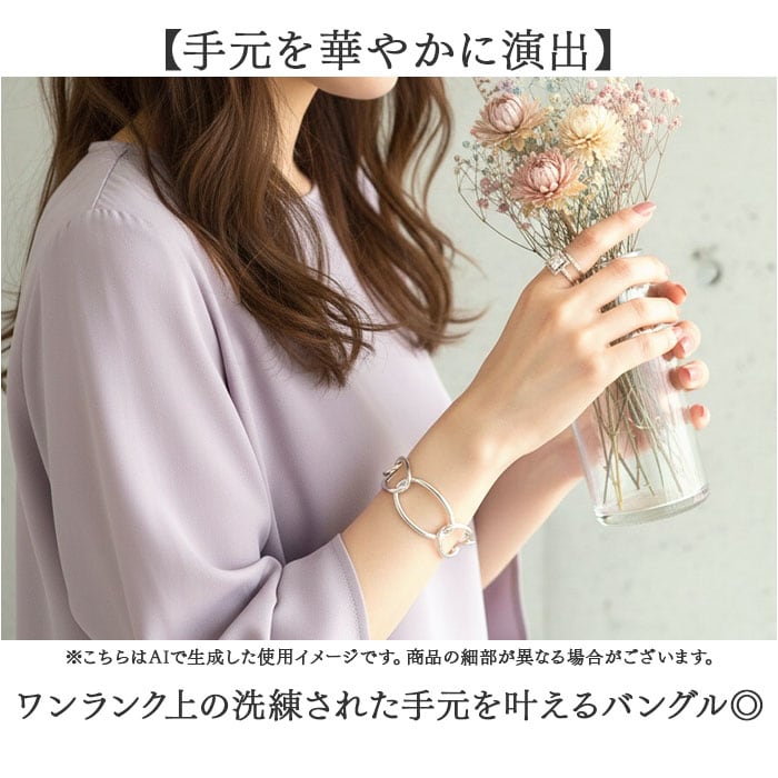 | 商品説明 | 【艶めく大振りバングル】変形チェーンモチーフで手元に華やかさをプラスする存在感あるデザイン。【手元を華やかに演出】ワンランク上の洗練された手元を叶えるバングル◎【艶やかな輝きが魅力】艶めく質感が手元に上品な輝きを添え、シンプルコーデのアクセントにぴったりなデザイン。【シーンを選ばず活躍】カジュアルからフォーマルまで対応できて、デイリーにもお出かけにも重宝するアイテム〇【軽やかな着け心地】程よい軽さで長時間着けていても疲れにくく、毎日のスタイリングに取り入れやすい♪ |