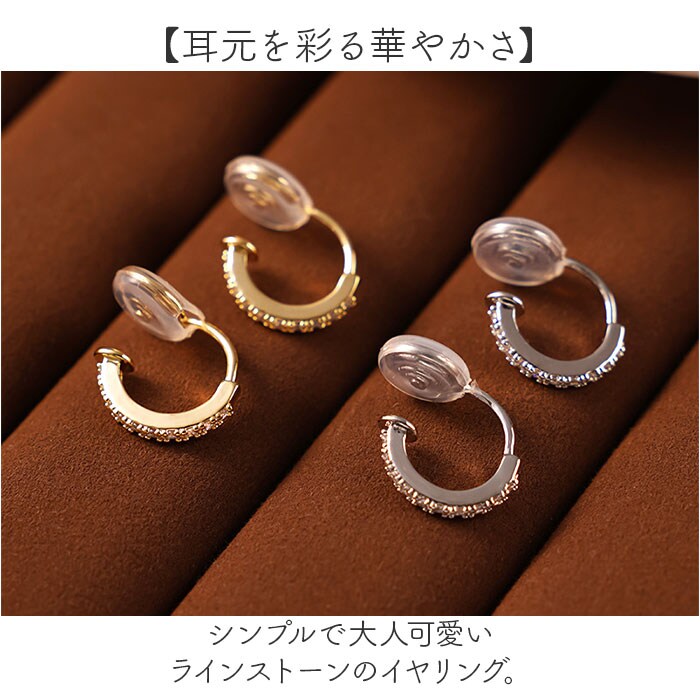 | 商品説明 | 【耳元を彩る華やかさ】シンプルで大人可愛いラインストーンのイヤリング。【シリコンで快適装着】シリコンパーツ付きだから耳への負担が少なく、長時間つけていても痛くなりにくい◎【小ぶりで上品な輝き】控えめサイズにラインストーンが繊細に煌めき、品のある華やかさを演出♪【シンプルで使いやすい】どんなコーディネートにも合わせやすいベーシックなデザインで、デイリーからお出かけまで活躍! |