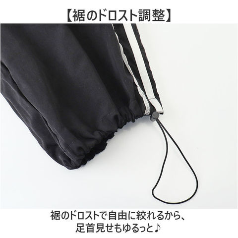 | 商品説明 | 【サイドライン映え】スポーティな抜け感で着映えするトラックパンツ。【シルエットも思いのまま】両サイドのラインがスタイルアップ効果を発揮◎【裾のドロスト調整】裾のドロストで自由に絞れるから、足首見せもゆるっと♪【ポケット付き便利】両サイドにポケットがあるから、小物もさっと収納できて実用性も抜群〇【ウエストゴムで楽】締め付け感なく履けるから、一日中快適に過ごせてストレスフリー。 |