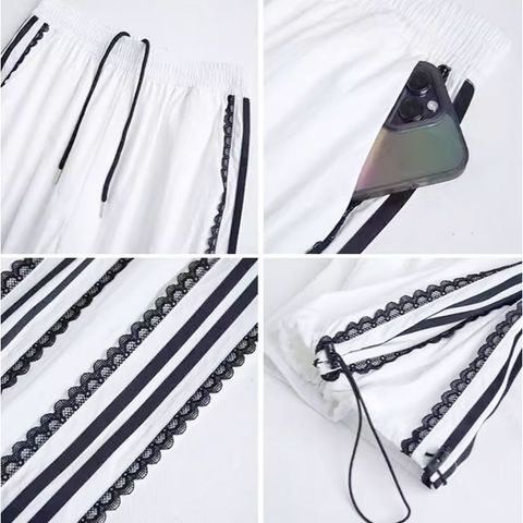 サイドライン トラックパンツ スポーティ【ホワイト】【Mサイズ】