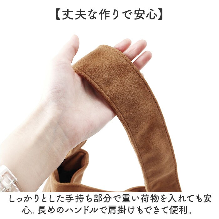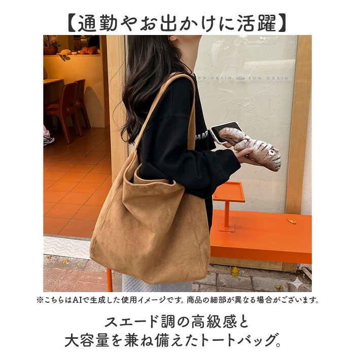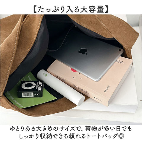 | 商品説明 | 【通勤やお出かけに活躍】スエード調の高級感と大容量を兼ね備えたトートバッグ。【たっぷり入る大容量】ゆとりある大きめのサイズで、荷物が多い日でもしっかり収納できる頼れるトートバッグ◎【丈夫な作りで安心】しっかりとした手持ち部分で重い荷物を入れても安心。長めのハンドルで肩掛けもできて便利。【上質なスエード調】合成皮革のスエード調素材が高級感を演出し、カジュアルにもきれいめにも合わせられる大人っぽい雰囲気!【軽やかな持ち心地】軽量設計だから長時間の外出でも肩に負担がかかりにくく、快適に持ち歩ける実用的なバッグ〇 |