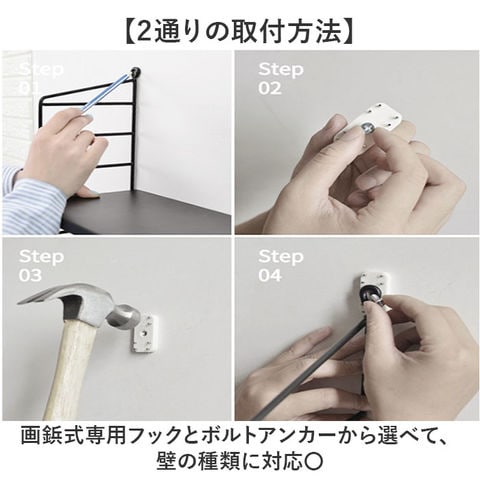 | 注意点 | [付属品]壁掛けフック x 4、ネジ x 4本、水平器 x 1個、棚板固定 x 12個海外輸入品のため、商品によってはパッケージや説明書が、英語や中国語表記となっている場合があります。商品を安価でご提供させていただくため、輸入時のパッケージのままでのお届けとなります。予めご了承くださいませ。海外輸入品のため、パッケージに破れ、傷やへこみがある場合がございます。本体には問題ございませんので、予めご了承くださいませ。商品の写真はできる限り実物のお色に近づけるように加工しておりますが、お使いのモニター設定、お部屋の照明などにより、実際の商品と異なる場合がございます。商品や個体差などにより、表記と若干異なる場合がございますが、予めご了承くださいませ。採寸方法の違いにより、多少の誤差がある場合がございます。こちらの商品本体、及び商品についている印字やタグに関しては、海外メーカー独自のサイズ情報や表記になります。実際には、当社にて日本向けに正しい情報をページに掲載させて頂いております。 |