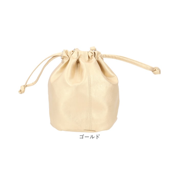 Rename ソフトフェイクレザー巾着バッグ【ゴールド】