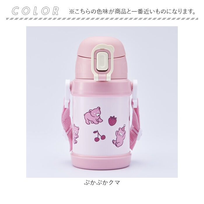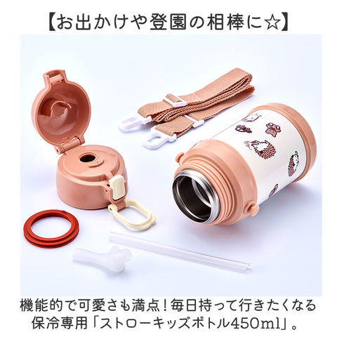 | 商品説明 | 【お出かけや登園の相棒に☆】機能的で可愛さも満点!毎日持って行きたくなる保冷専用「ストローキッズボトル450ml」。【冷たさをキープ!真空2重構造】本体内側と外側が真空断熱された、2重構造タイプ。美味しい温度で、身体もリフレッシュ♪【いつでも簡単ワンプッシュオープン】飲む時は片手でワンタッチ。安心して持ち運べるロック機能を搭載。【1人でも飲みやすいストロータイプ】せんユニットには、柔らかなシリコーン製ストロー付き。小さなお子さまもゴクゴク水分補給☆【ドリンク準備がスムーズ】本体はドリンクを注いだり、氷も入れやすい広口設計。持ち運びやすい容量450mlサイズ。【分解できてお手入れラクラク】ストローは着脱しやすく、せんパッキンも取り外し可能。お手入れしやすく衛生的。【サッと持ち出せてノンストレス】小さな体に負担がかかりにくい、軽量なつくり。デイリー使いにぴったり。【肩に掛けてラクラク持ち歩き】長さ調節可能なショルダーベルトを付けて、肩掛けや斜め掛け。アクティブシーンや登園に!【ナチュラルでキュートなデザイン】柔らかなカラーに、立体感のあるふっくらとした絵柄がポイント♪お気に入りをチョイス。 |