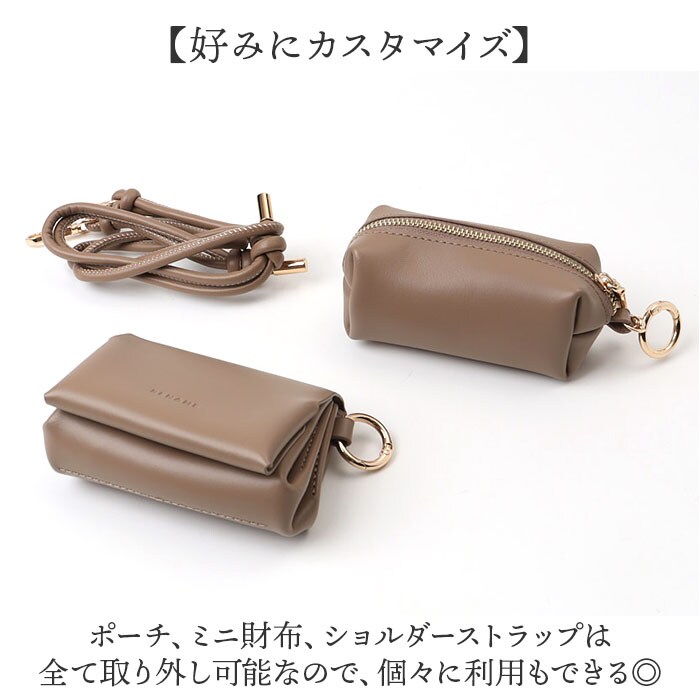 Rename ミニ財布 マルチポーチ ショルダーストラップ 3点セット【トープ】