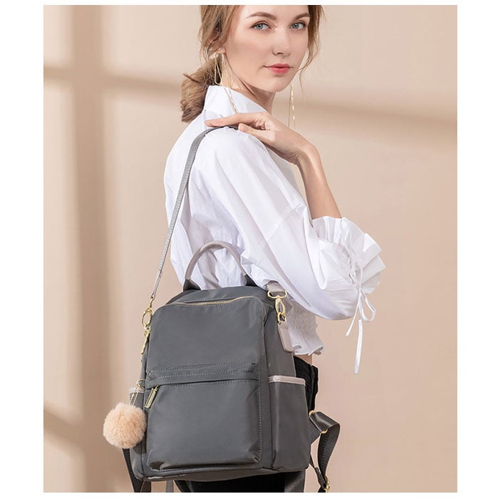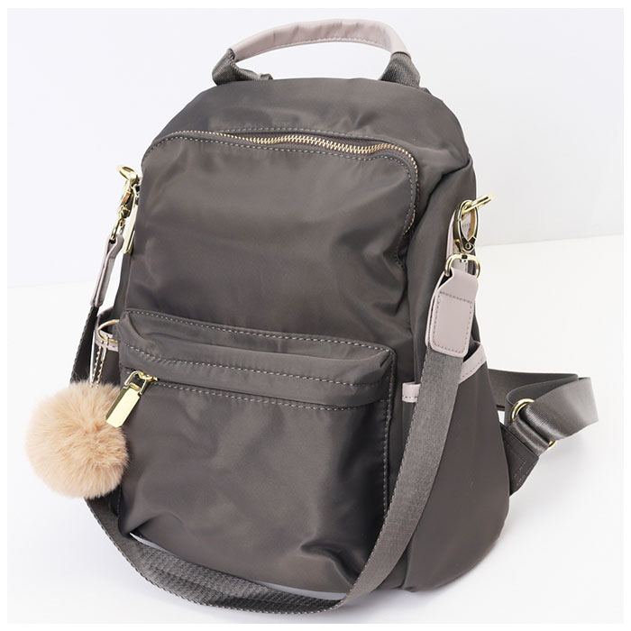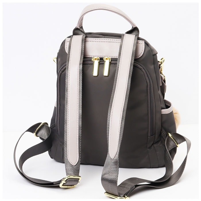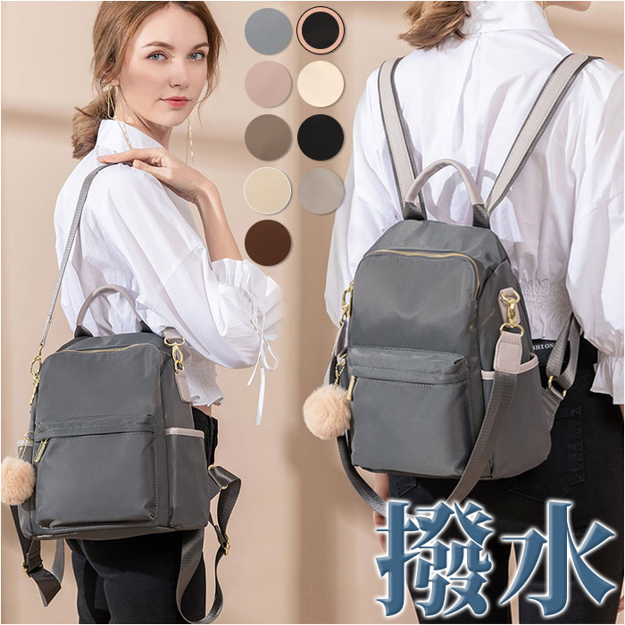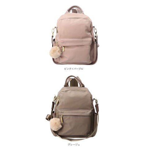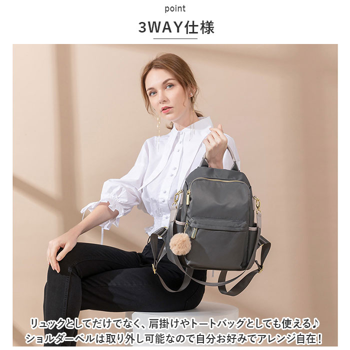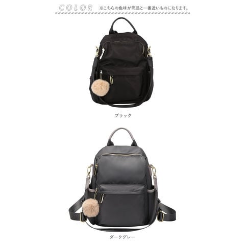| 商品説明 | 通勤やちょっとしたお出かけに便利なリュック。【ちょうどいいサイズ感】見た目はコンパクトなのに、9つの収納で見た目以上の収納力。大きすぎず、小さすぎない、軽くてちょうどいいサイズ感が嬉しい♪【3WAY仕様】リュックとしてだけでなく、肩掛けやトートバッグとしても使える3WAY仕様。ショルダーベルは取り外し可能なので自分お好みでアレンジ自在!【メインルームはきちんと整理】メインは背面から開くシークレットルーム。開口部は大きく開くラウンドファスナータイプで、出し入れがしやすい◎小物収納に便利なオープンポケットX2、ファスナーポケットX2があるので、散らかりがちなバッグの中身をきちんと整理整頓出来る。約12cmのマチはお弁当を水平に入れられる広さ。(※お手持ちのお弁当箱のサイズをご確認ください。)【フロントポケット】フロントにはA5ノートやタブレットなどの収納に使える少し大きめのファスナーポケットと、定期や鍵など使用頻度の高い小物を入れるのに便利なファスナーポケット付き。【サイドポケット】サイドにもオープンポケットを配置し、スリムなウォーターボトルやミニ折りたたみ傘を収納するのにちょうどいい♪【撥水効果】程よいツヤ感が高見えする生地の表面には撥水効果があり、水滴や汚れが付いてもサッと拭き取れて汚れが付きにくい◎【大人っぽさと可愛さをMIX】引き手などにはフェイクレザーを使用し、ゴールドの金具と付属のふわふわのチャームが大人っぽさと可愛さをMIX。通勤やデイリー使いはもちろん、旅行用のサブバッグとして使うのもおススメ。 |
