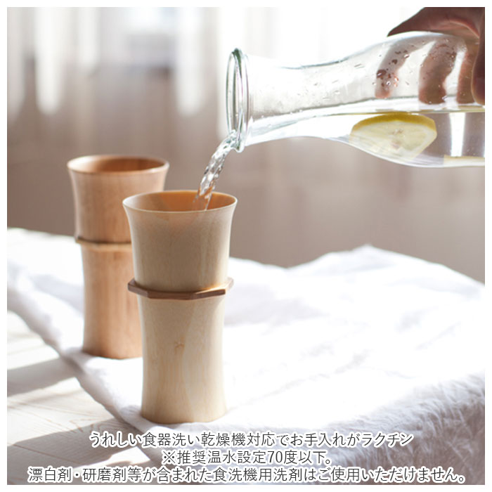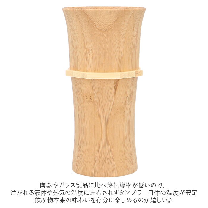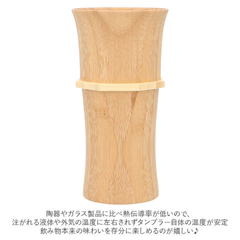 | 商品説明 | 天然素材を使用した、おしゃれなタンブラーLサイズ(ペアセット)が発売。中国・江西省地方にある竹林にて収穫された、天然孟宗竹を使用。しっくりとなじむ手ざわりと、優しくなめらかな口あたり♪見た目も質感も柔らかな、天然素材ならではの良さが際立つタンブラー。陶器やガラス製品に比べ熱伝導率が低いので、注がれる液体や外気の温度に左右されずタンブラー自体の温度が安定。飲み物本来の味わいを存分に楽しめるのが嬉しい♪竹のようなスリムデザイン。容量は約250ml。ビールやカクテル、ソフトドリンクなど、どんな飲み物を注いでもOK!麦やホップ本来の香りを逃がさず、最後の一口までビール感をやさしく保ってくれるので、ビールでの使用がおすすめ◎天然緑茶成分配合の塗料と、竹本来の持つフィトンチッドの相乗効果で「大腸菌・黄色ブドウ球菌の抑制」を実証した独自開発技術「ロハスコート」を採用。(※全ての菌に対する抑制・永続的な効果を保証するものではありません。)素材の内部まで浸透させる6層コーティング仕様。飲料の色移りや染み込みを防止してくれるので、陶器などと同様に普段使いが可能。うれしい食器洗い乾燥機対応でお手入れがラクチン。(※推奨温水設定70度以下。漂白剤・研磨剤等が含まれた食洗機用洗剤はご使用いただけません。)天然素材本来の色味をいかした高級感のあるホワイトと、高温で燻すことで色を変化させた趣のある色合いのブラウンのペアセット。ボックス入りで、結婚祝いなどのプレゼントに最適◎ |