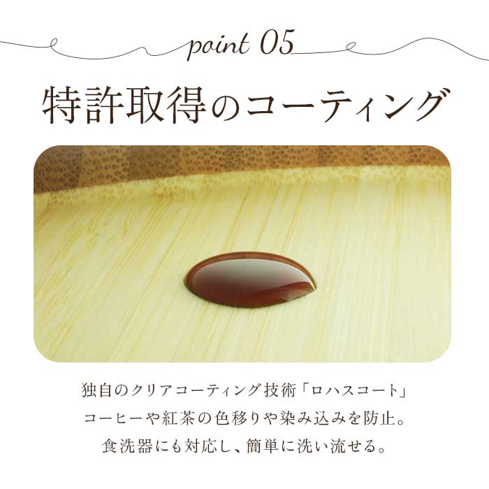| 素材 | [原材料]天然孟宗竹 [表面塗装]ウレタン(LOHASコート) |