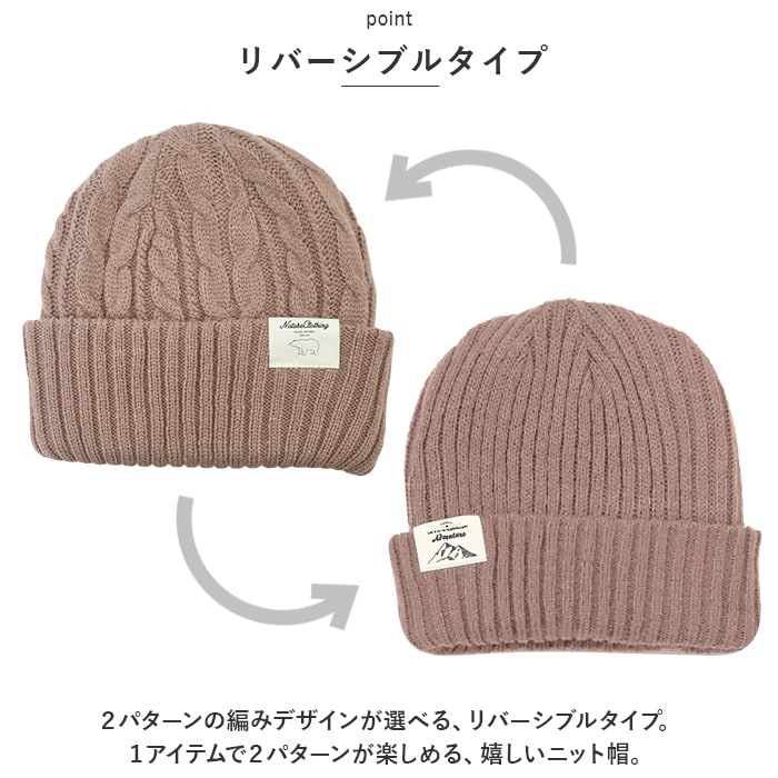 | 商品説明 | デザインが選べるリバーシブルタイプ☆ニット帽が登場。【リバーシブルタイプ】2パターンの編みデザインが選べる、リバーシブルタイプ。1アイテムで2パターンが楽しめる、嬉しいニット帽。【くさり編みとリブ編み】こなれ感のあるくさり編みと、すっきりキマる定番のリブ編み。その日の気分でチョイスでき、コーデをワンランクアップしてくれる♪【選べるラベル】アニマルデザインとマウンテンデザインの2つのラベルを採用。同じカラーでも印象がガラッと変わるので、ファッションを楽しめる☆【ふんわり生地】ふんわりとした厚手の生地感。おしゃれなだけでなく、防寒対策にもぴったり。寒い季節のお出かけで活躍する!【チクチクしにくい】アクリルを100%使用した生地で、チクチクしにくい◎ニット帽が苦手な方、初めてニット帽を使う方にもオススメ。【こっくりカラー】選べるこっくりカラー。肌なじみのよい色合いなので、どの色もお洋服に合わせやすい。お好みをチョイス! |