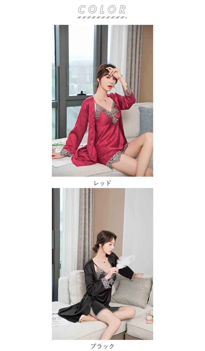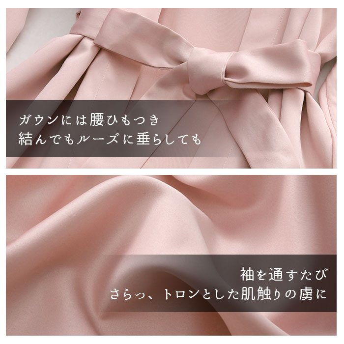 | 商品説明 | くつろぎ時間をより優雅に。3シーズンを快適に過ごせる「ルームウェア5点セット」が新登場。セット内容は、ワンピース・キャミソール・ガウン・ショートパンツ・ロングパンツと、充実の組み合わせ。生地にはとろみのあるサテンシフォンを使用。その滑らかな肌ざわりと綺麗なドレープに思わずうっとり。裾回りや袖口、胸元には繊細なレースを配置し、エレガントでロマンティックなムードに。キャミソールのパッドは入れ替えができるので、お好みのものとチェンジが可能。お洗濯時の型くずれの心配がないのも嬉しい。肩紐は長さ調節ができるアジャスター付き。お胸の厚みに合わせてジャストなフィット感で快適に着られる。また、ウエスト部分やキャミソールの背中部分には伸縮性のあるゴムを用いることで、リラックスできる着用感に。見た目の美しさだけでなく、大切なひとときを心地よく過ごせる実用性が魅力的。 |