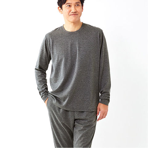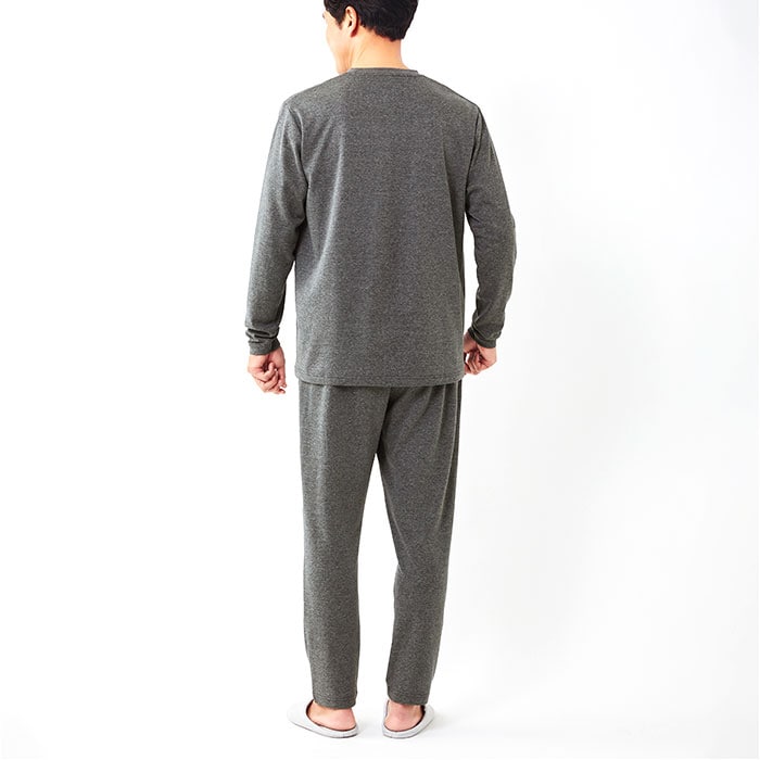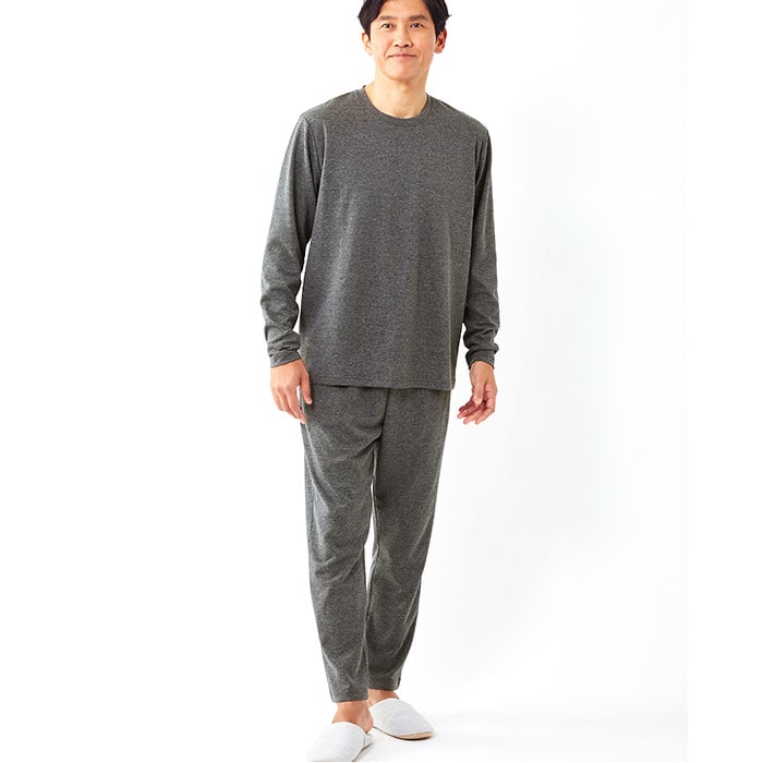 リカバリーケアメンズ長袖シャツ・ロングパンツ上下セット【杢グレーx杢グレー】【LLサイズ】